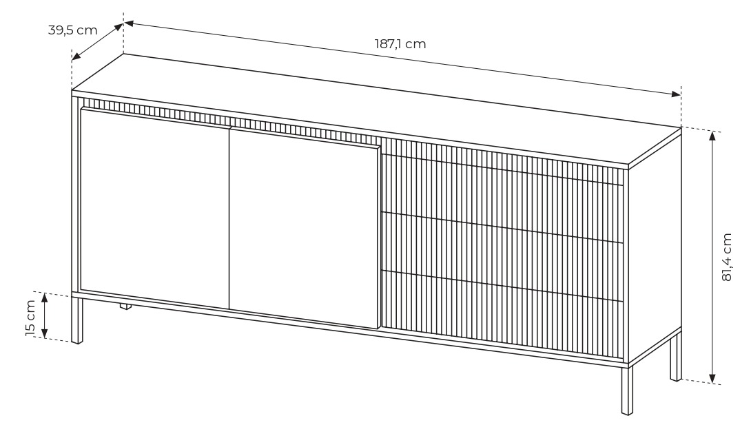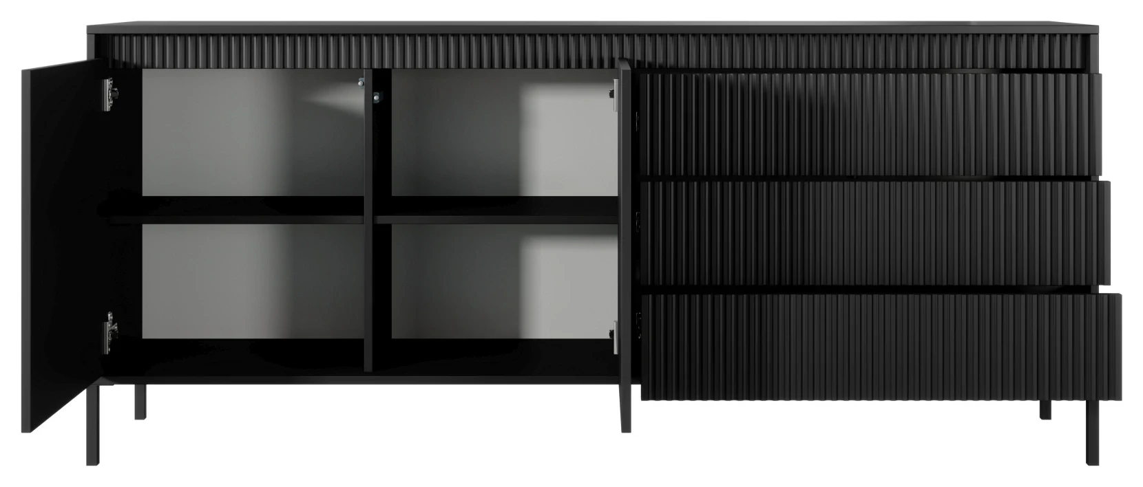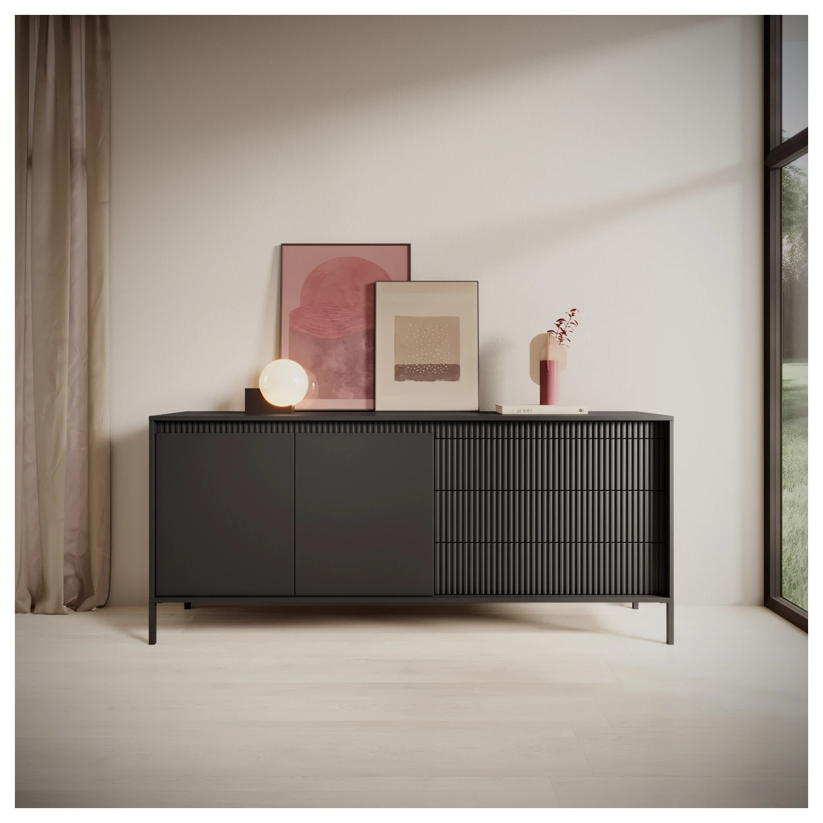 Komoda Senso 2-drzwiowa z 3 szufladami i ryflowanymi frontami 187 cm czarna