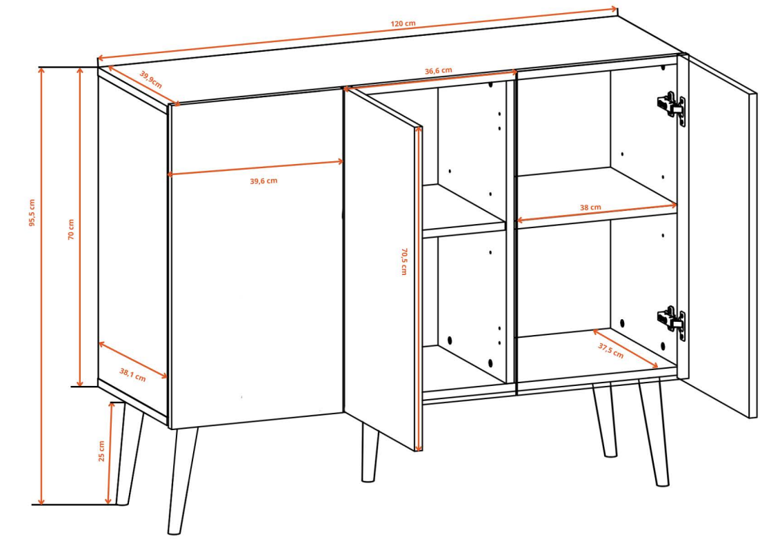 - Szerokość frontu drzwi: 38 cm / 36,6 cm / 38 cm