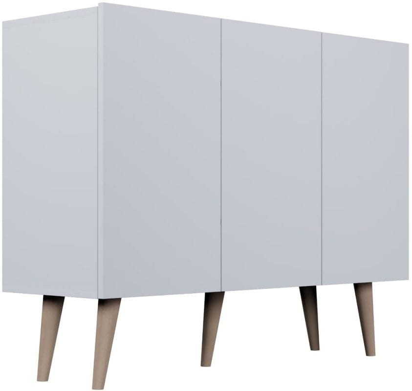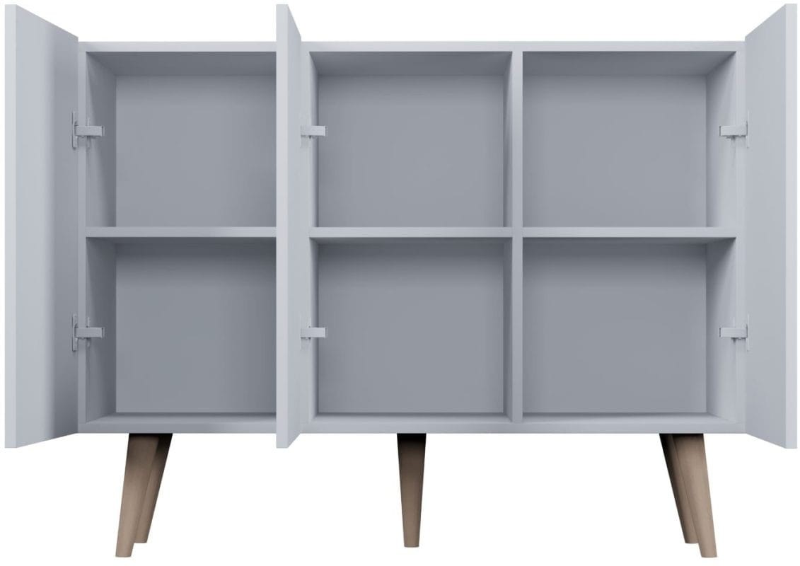 Komoda Toronto to praktyczny mebel do salonu utrzymany w nowoczesnym skandynawskim designie. Komoda idealnie sprawdzi się w mniejszych lub średnich salonach i pokojach wypoczynkowych. Wyposażona została pojemne półki znajdujące się za drzwiczkami, dzięki czemu znajdzie się w niej miejsce na dokumenty, ubrania, książki czy inne przedmioty. Szafka stoi na nóżkach o wysokości 25 cm, co ułatwia dbanie o czystość pod meblem.