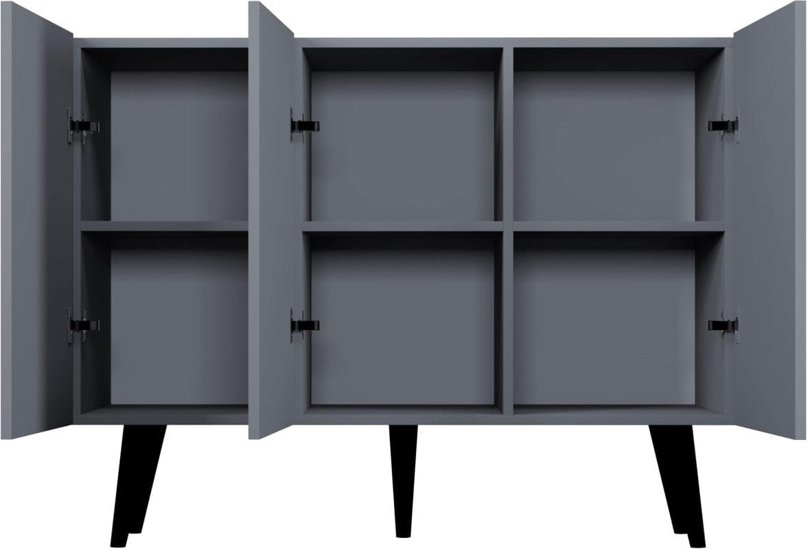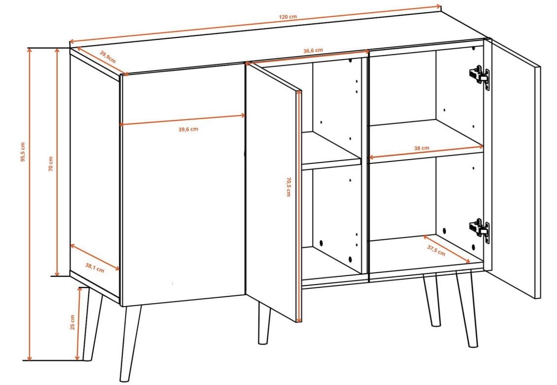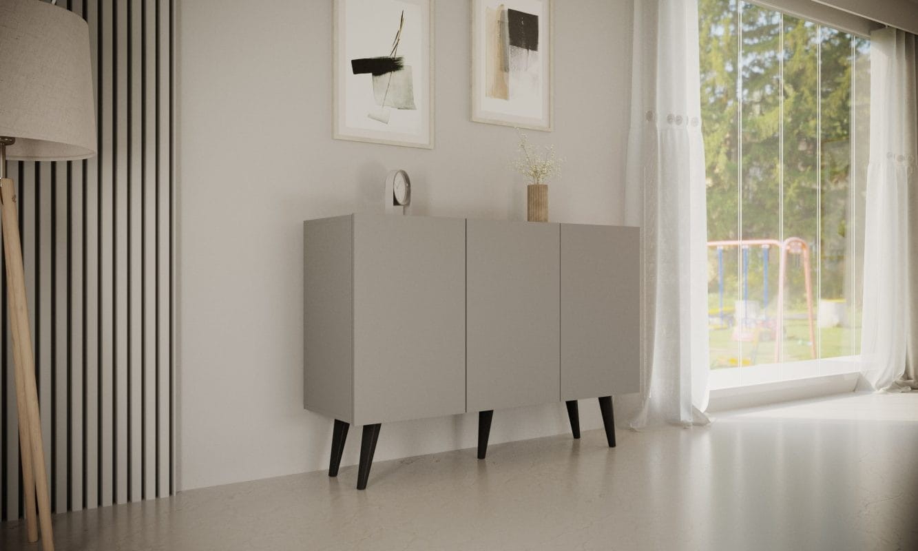 Komoda Toronto to praktyczny mebel do salonu utrzymany w nowoczesnym skandynawskim designie. Komoda idealnie sprawdzi się w mniejszych lub średnich salonach i pokojach wypoczynkowych. Wyposażona została pojemne półki znajdujące się za drzwiczkami, dzięki czemu znajdzie się w niej miejsce na dokumenty, ubrania, książki czy inne przedmioty. Szafka stoi na nóżkach o wysokości 25 cm, co ułatwia dbanie o czystość pod meblem.