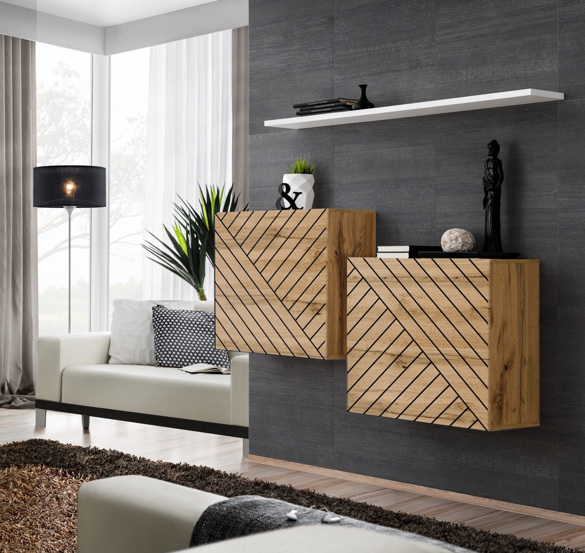 Komoda wisząca Switch Lamel I zestaw z półką do salonu