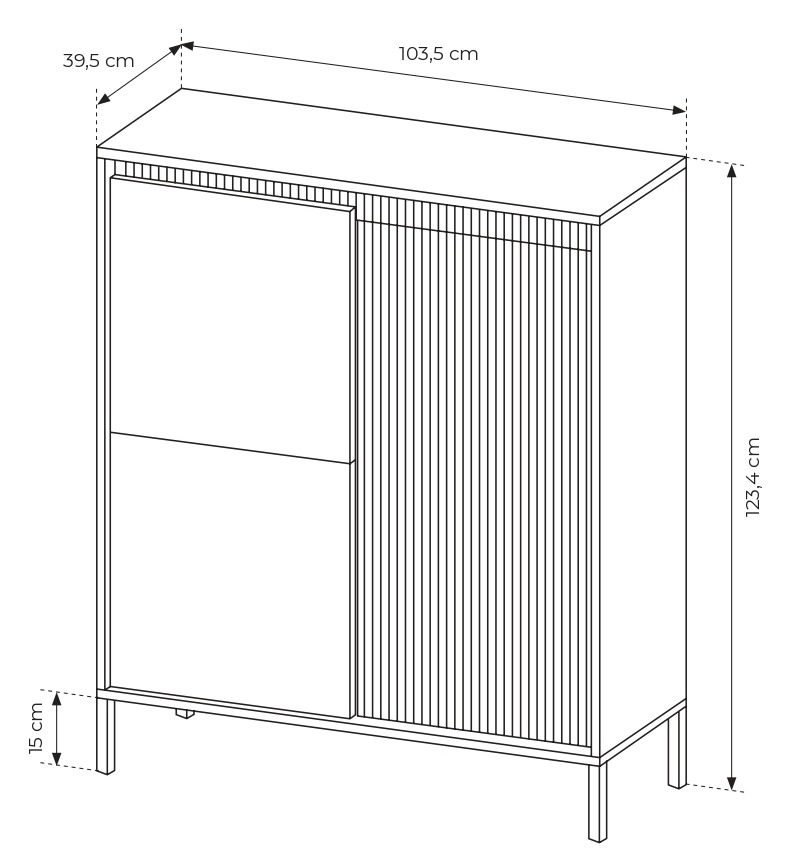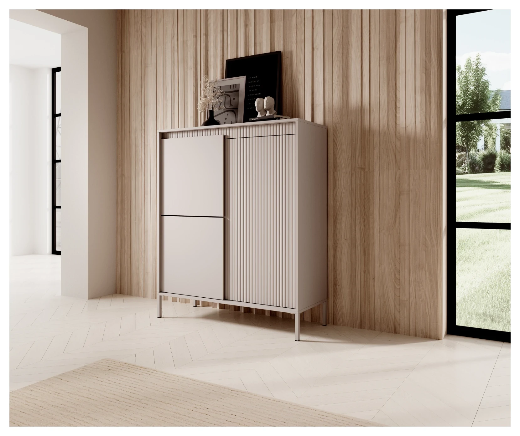 Komoda wysoka Senso 3-drzwiowa z ryflowanym frontem 103 cm beżowa