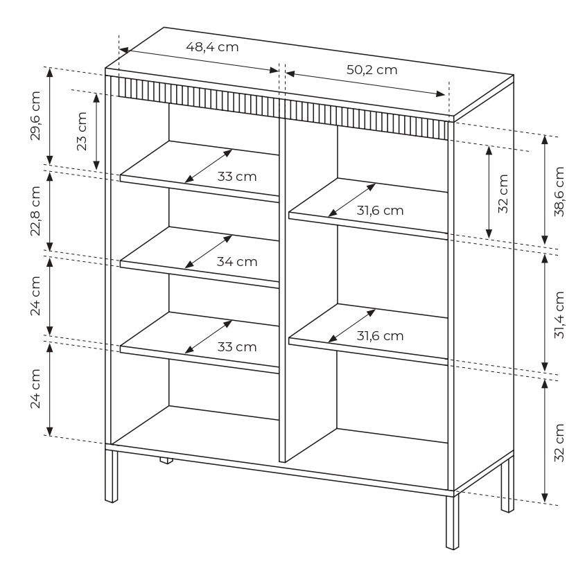 - Korpus: płyta meblowa laminowana E05, 16 mm