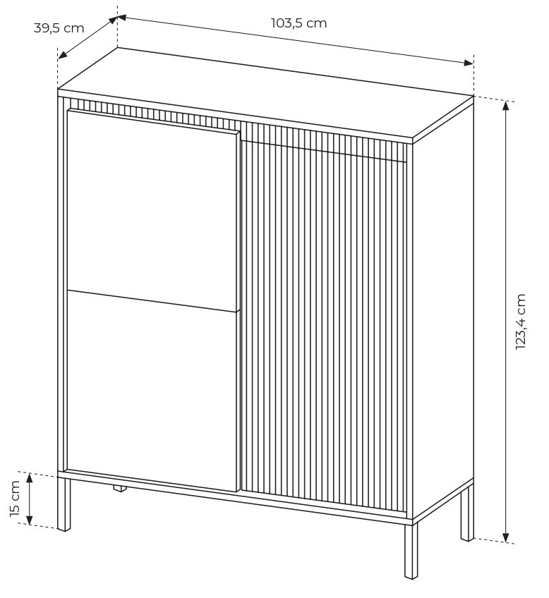 Komoda wysoka Senso 3-drzwiowa z ryflowanym frontem 103 cm czarna