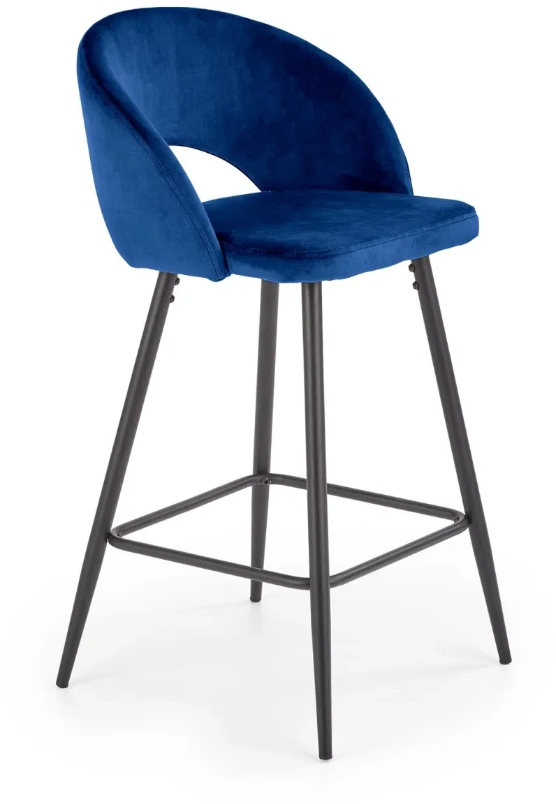 Krzesło barowe H96 nowoczesne tapicerowane tkaniną aksamitną hoker do kuchni jadalni granatowy