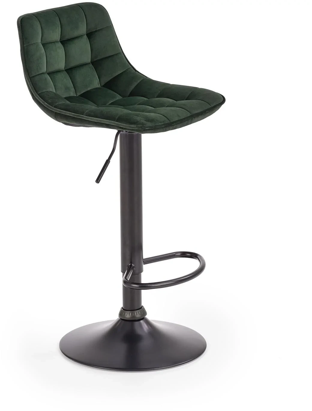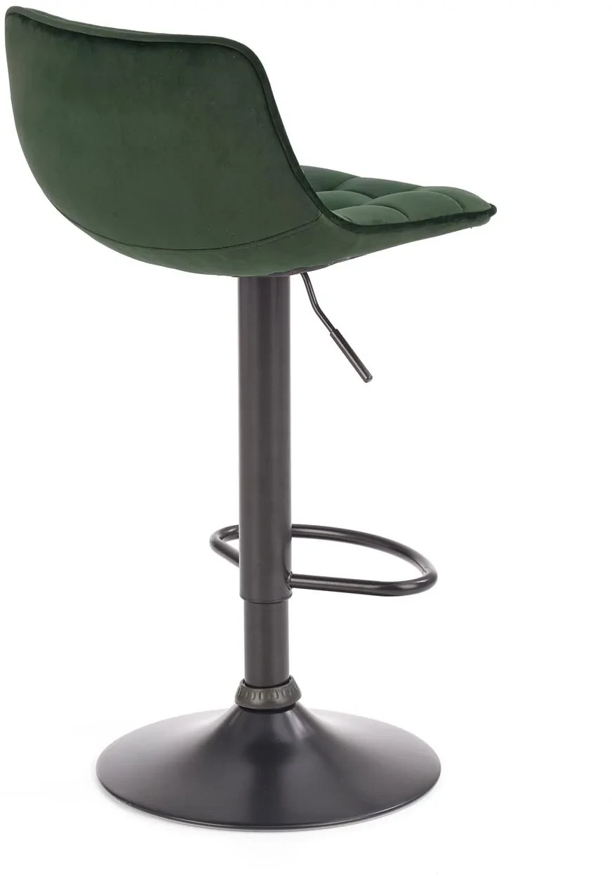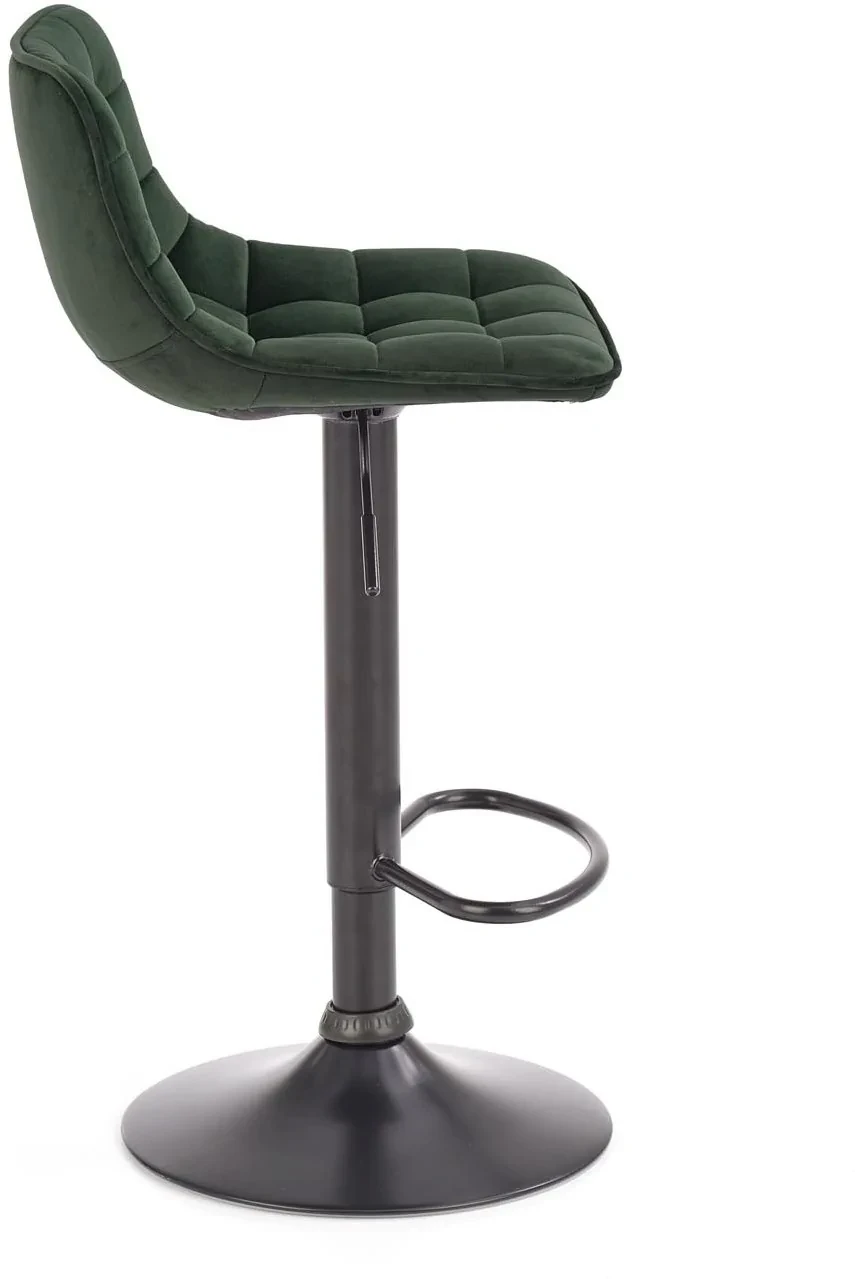 Hoker H95 w kolorze ciemnej zieleni to elegancki i nowoczesny dodatek do kuchni, jadalni lub baru. Jego siedzisko pokryte jest miękką tkaniną velvet BLUVEL 78, która pięknie odbija światło, nadając wnętrzu wyjątkowego charakteru. Stabilna podstawa ze stali malowanej proszkowo w kolorze czarnym podkreśla industrialny styl mebla i zapewnia trwałość użytkowania. Dzięki regulacji wysokości hoker dopasujesz zarówno do klasycznych blatów kuchennych, jak i wysokich wysp.