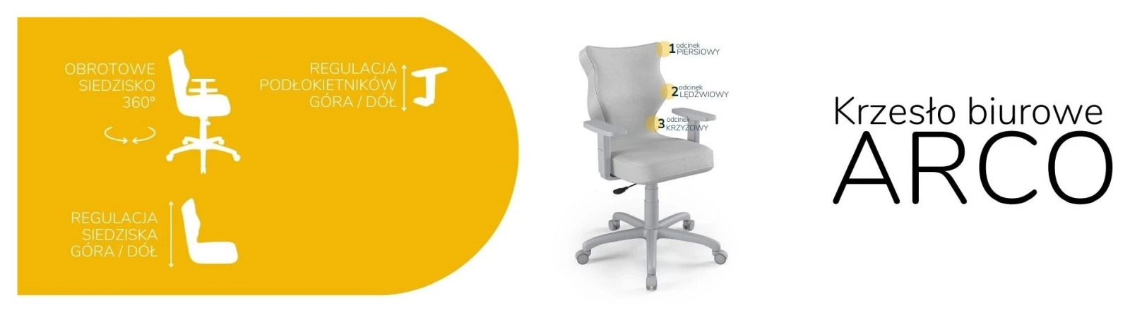 Krzesło biurowe obrotowe do biurka Arco wzrost 159-188 cm szara podstawa kółka