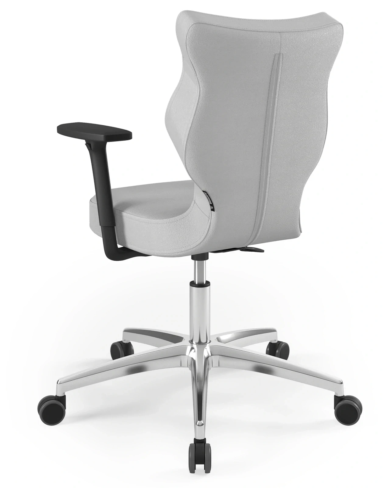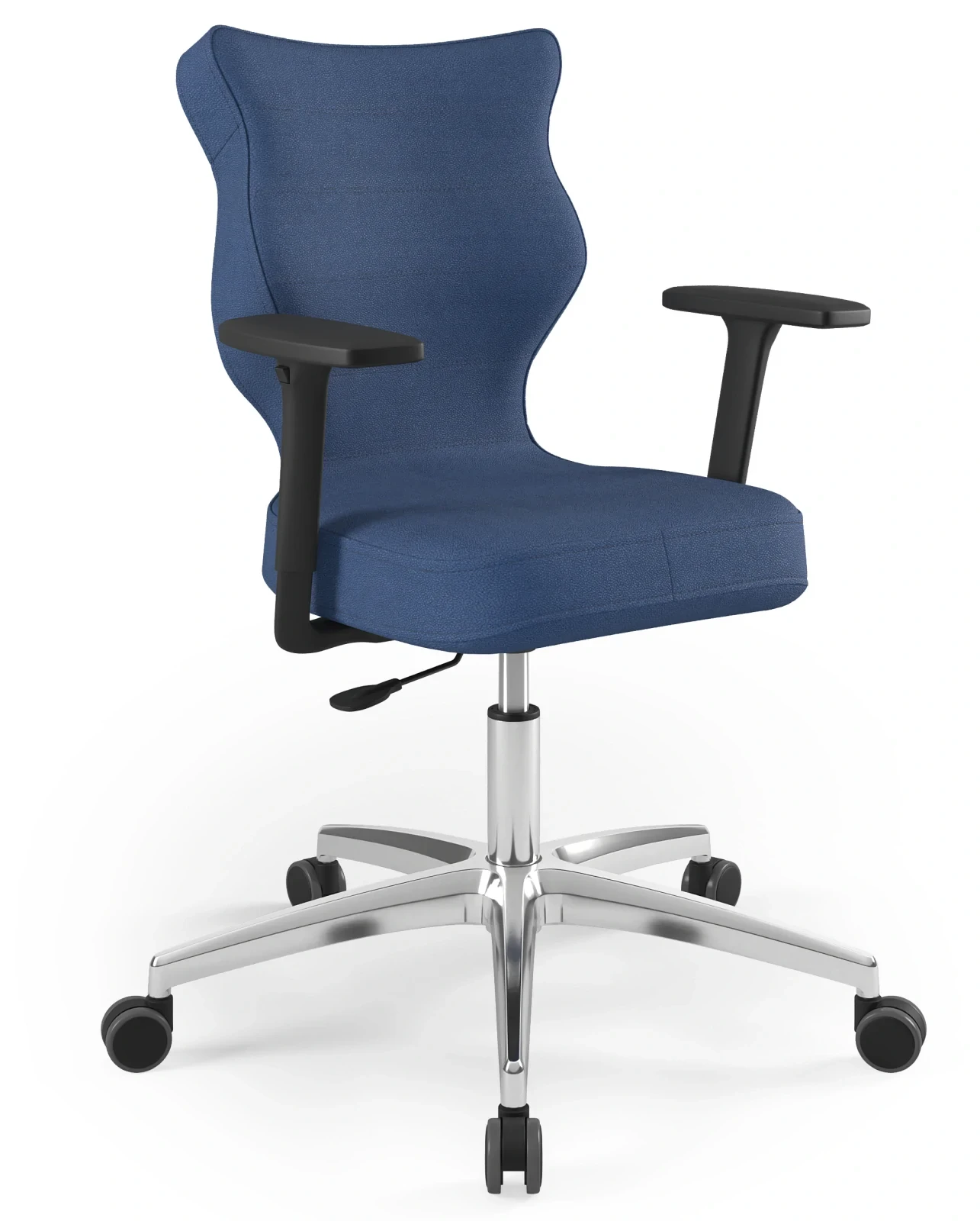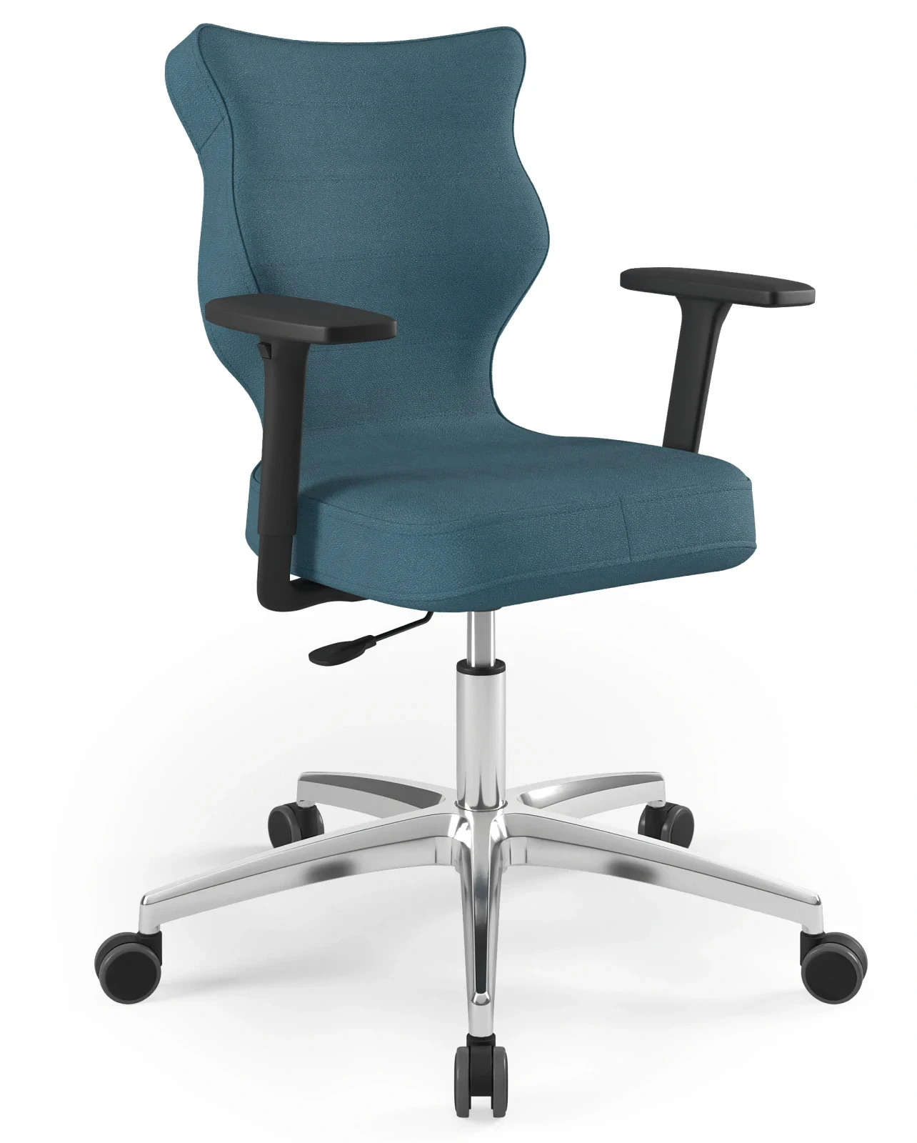 Krzesło obrotowe Perto Plus to ulepszona wersja klasycznego modelu Perto, oferująca jeszcze większy komfort i funkcjonalność. Wyposażone w polerowaną aluminiową podstawę, prezentuje się elegancko i nowocześnie, idealnie wpisując się w aranżacje biur i gabinetów. Ergonomiczny kształt siedziska i oparcia wspiera prawidłową postawę ciała, a regulowane podłokietniki oraz wysokość siedziska pozwalają na pełne dopasowanie do potrzeb użytkownika. Model dedykowany jest osobom o wzroście od 159 do 188 cm, gwarantując wygodę podczas wielogodzinnej pracy lub nauki.