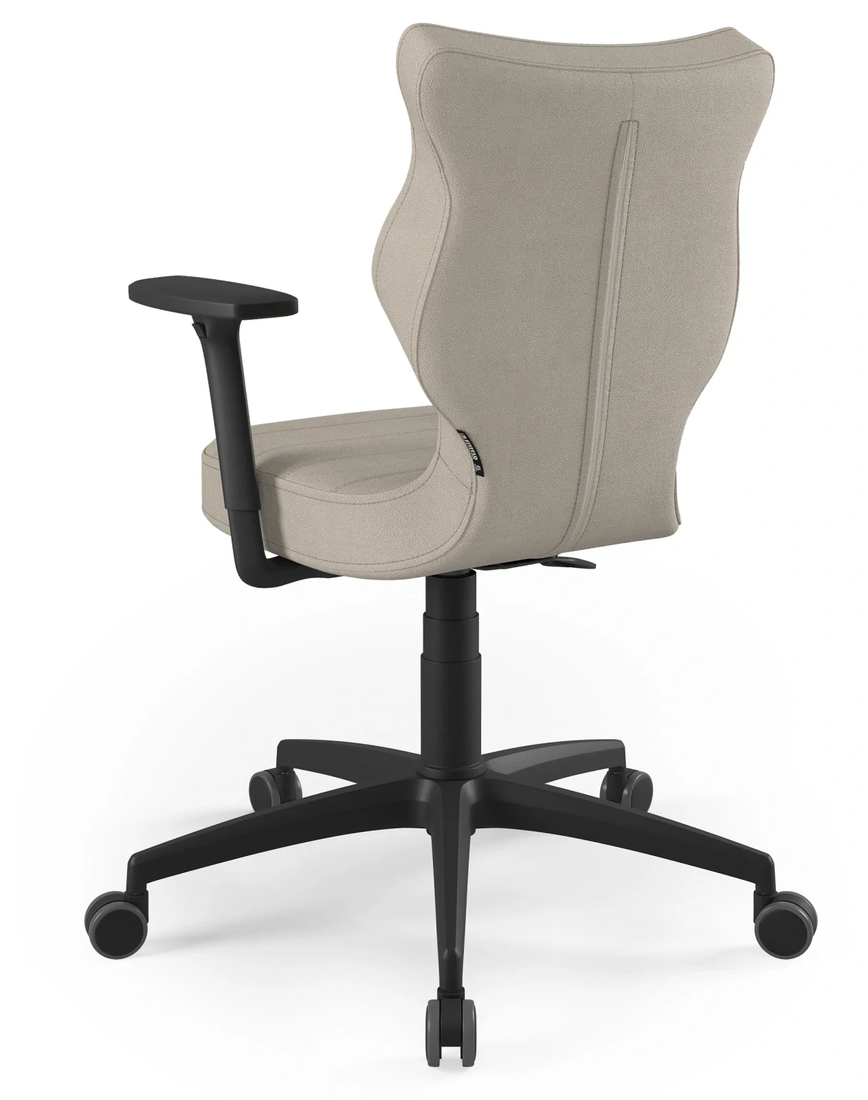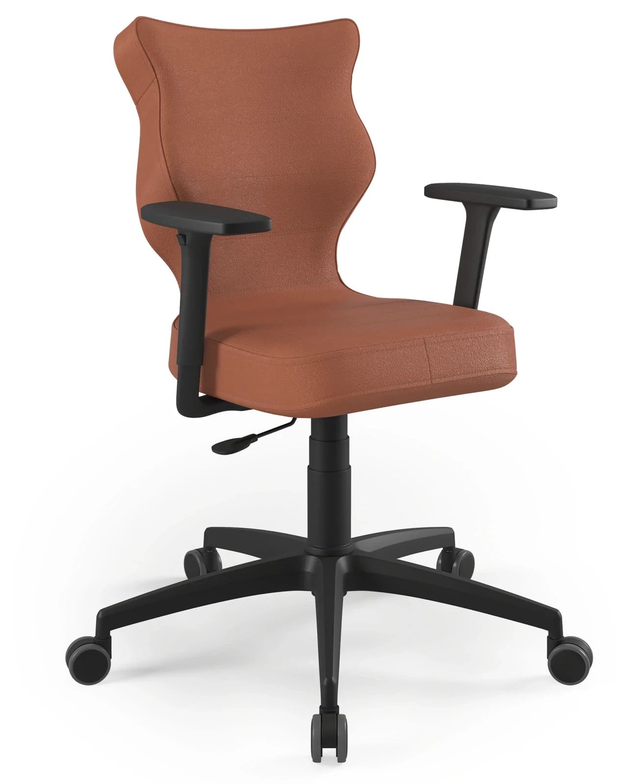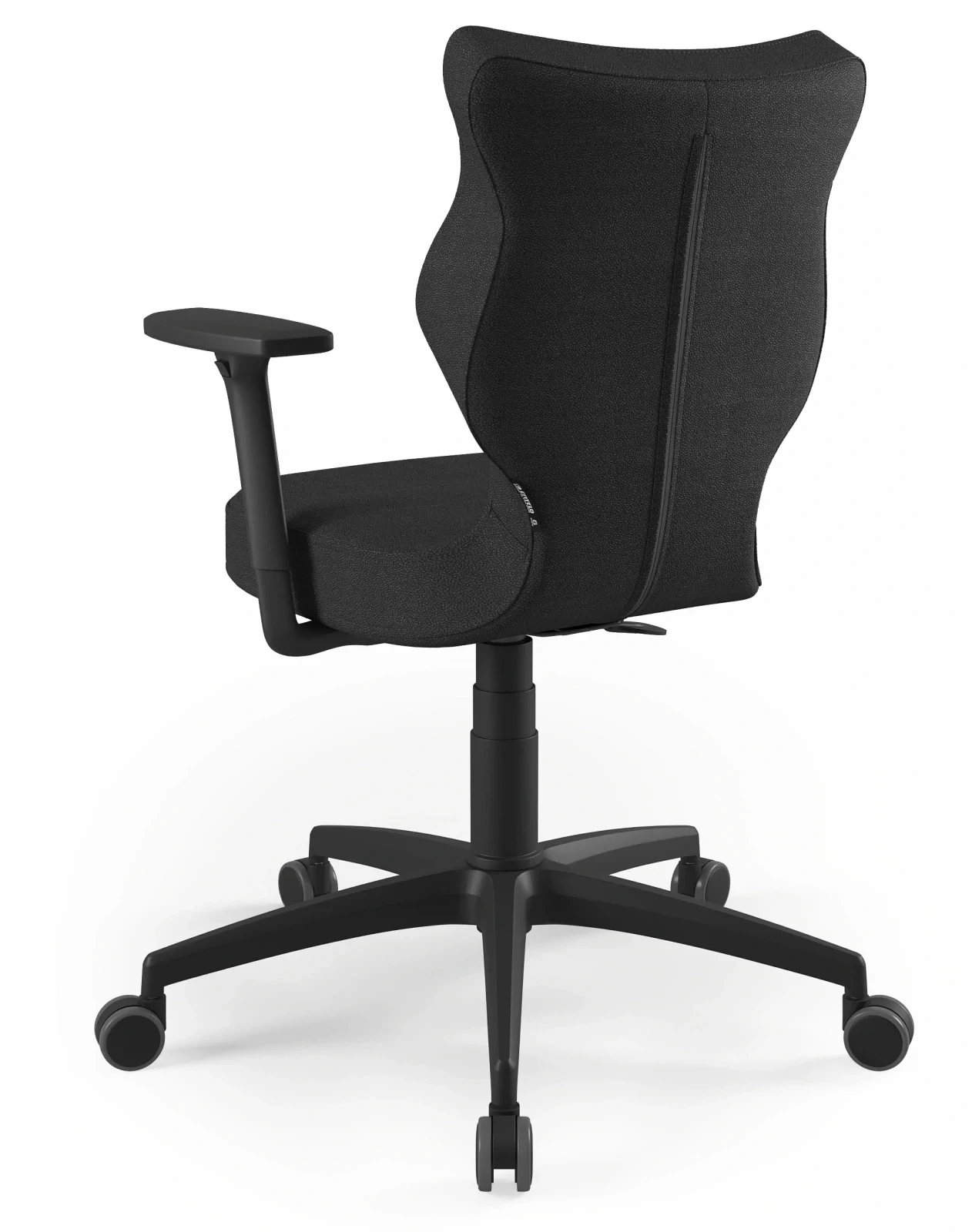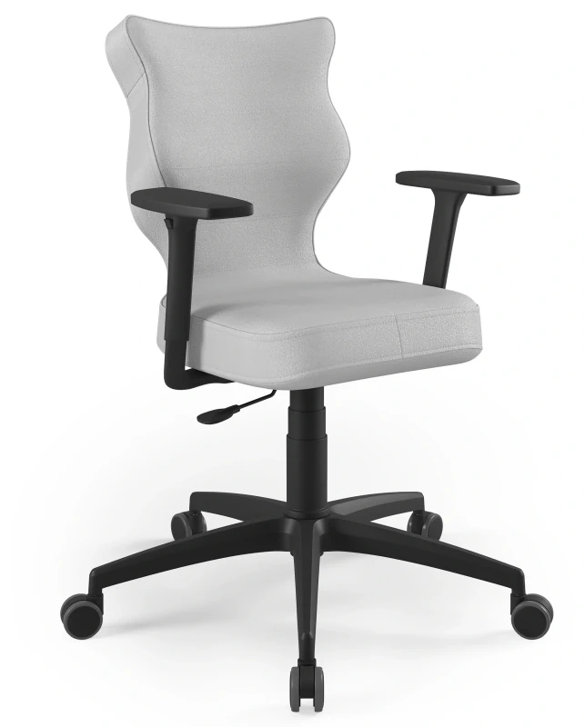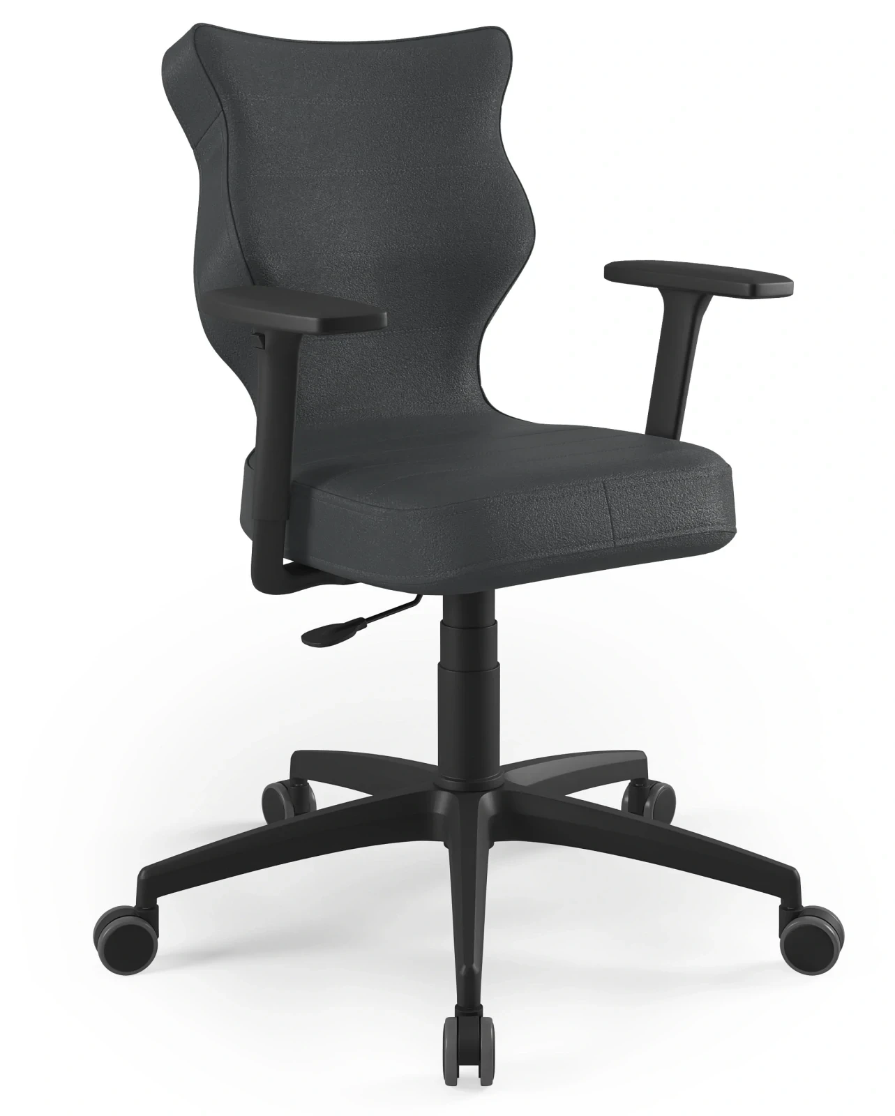 Krzesło obrotowe Perto Plus to nowoczesne i funkcjonalne rozwiązanie dla osób, które spędzają wiele godzin przy biurku. Wyposażone w solidną, czarną podstawę, łączy elegancję z wysoką trwałością. Ergonomicznie zaprojektowane siedzisko i oparcie zapewniają optymalne wsparcie dla kręgosłupa, a możliwość regulacji wysokości siedziska i podłokietników pozwala na dostosowanie krzesła do indywidualnych preferencji. Model dedykowany jest osobom o wzroście od 159 do 188 cm, gwarantując wygodę i wsparcie podczas pracy lub nauki.