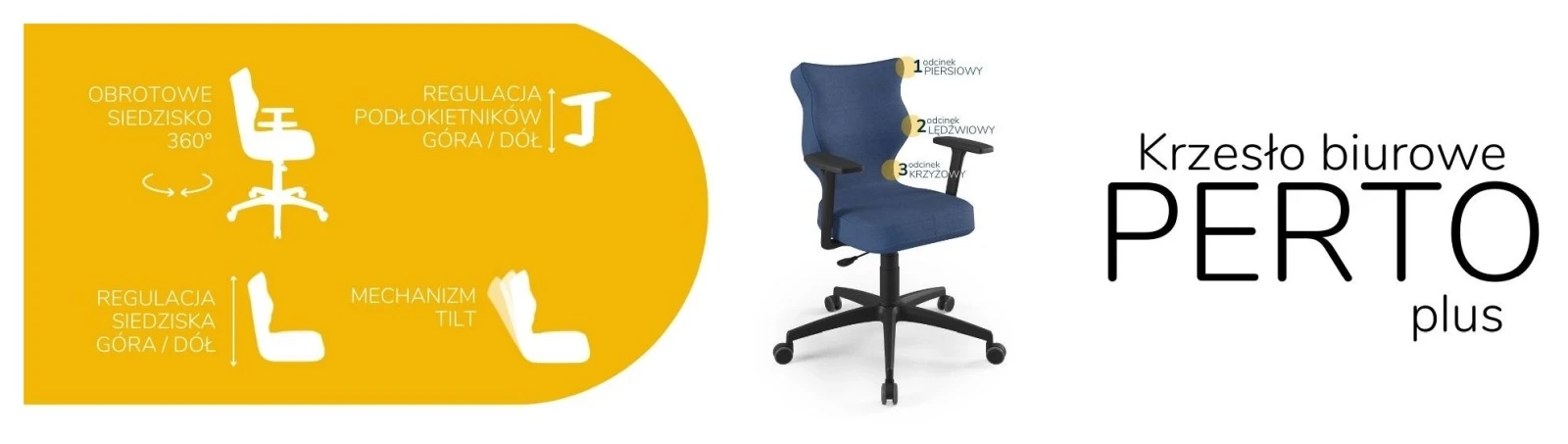 *Krzesło biurowe Perto Plus dostępne jest również w naszej ofercie w innym rozmiarze oraz w innych kolorach podstawy.