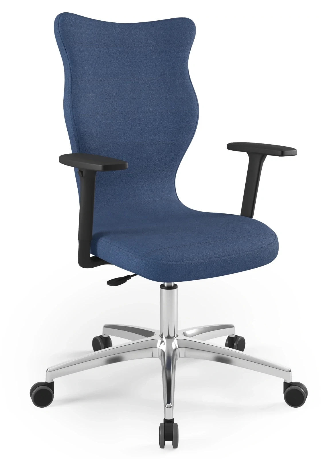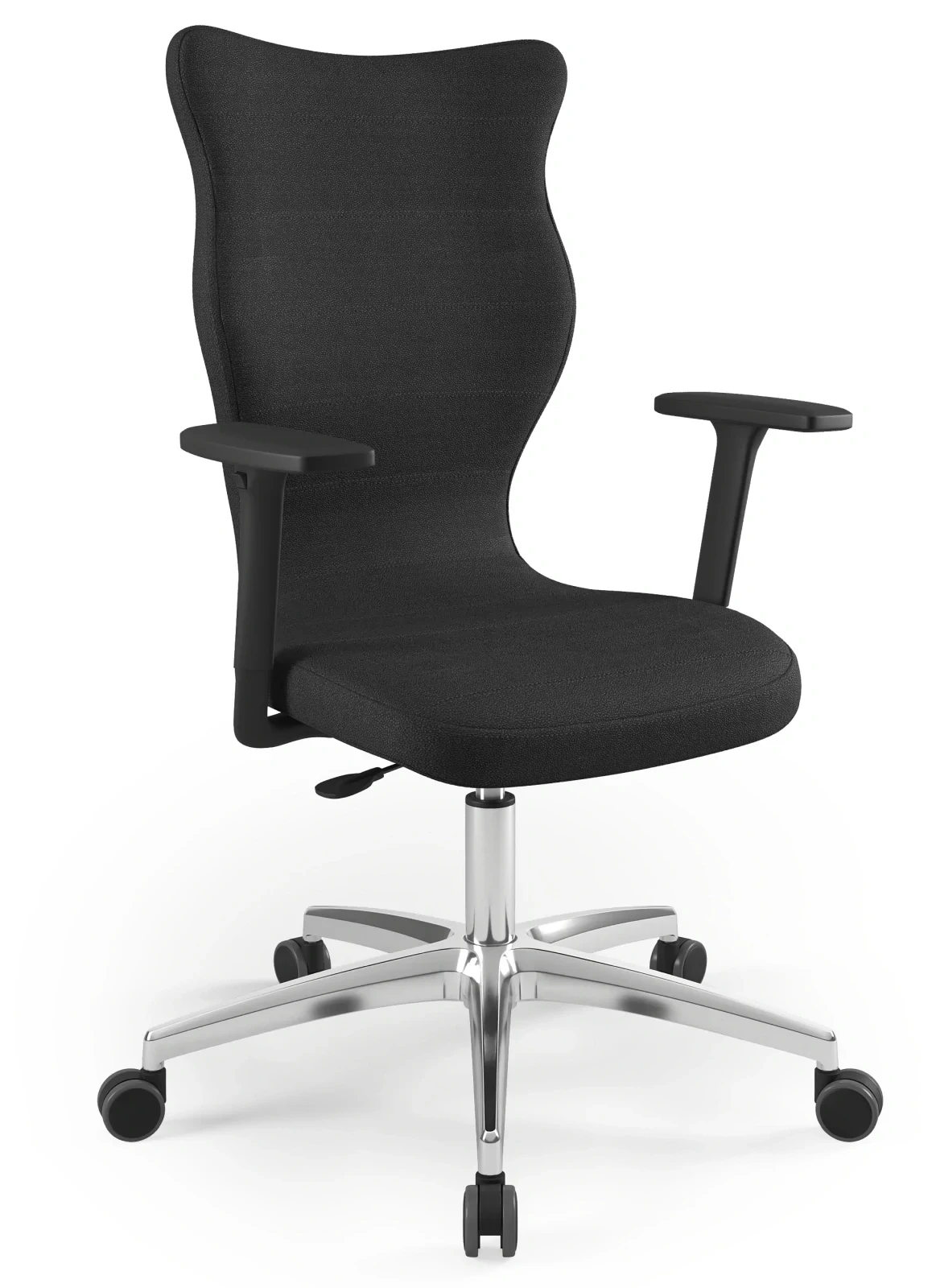 Krzesło obrotowe Perto Plus w wersji dla osób wysokich to połączenie elegancji, solidnego wykonania i maksymalnego komfortu. Wyposażone w polerowaną aluminiową podstawę, wyróżnia się nowoczesnym wyglądem i wyjątkową trwałością. Wysokie oparcie oraz obszerne siedzisko zapewniają ergonomiczne wsparcie kręgosłupa, a możliwość regulacji wysokości siedziska i podłokietników pozwala na pełne dopasowanie ustawień do indywidualnych potrzeb użytkownika. Model przeznaczony jest dla osób o wzroście powyżej 188 cm, gwarantując wygodę nawet podczas wielogodzinnej pracy lub nauki.