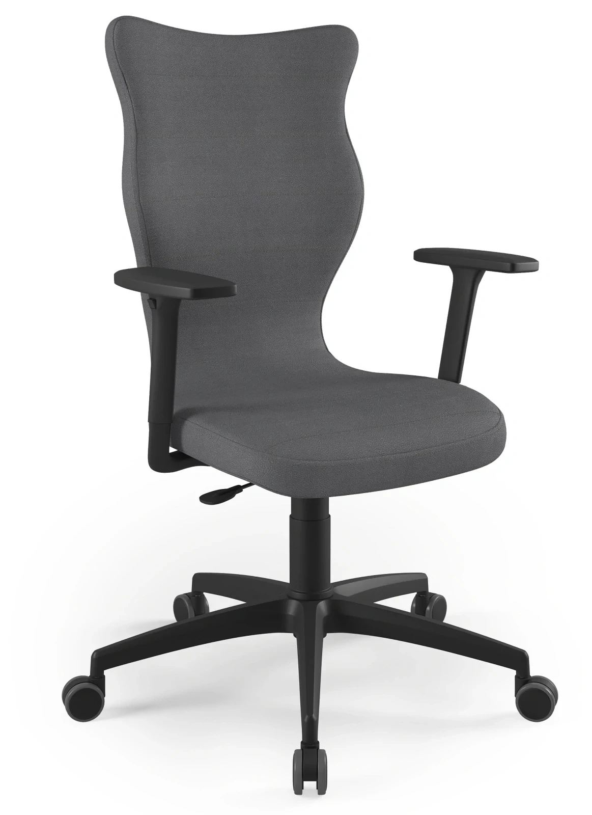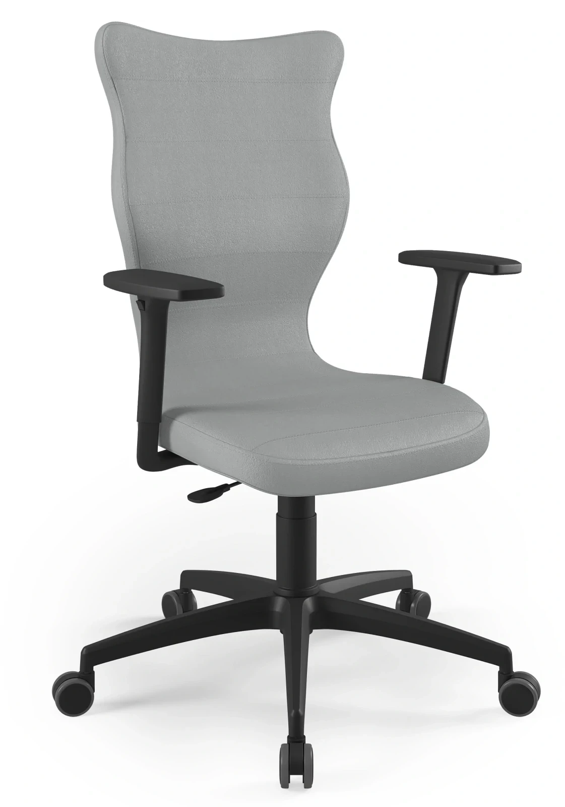Krzesło obrotowe Perto Plus w wersji dla osób wysokich to połączenie wygody, ergonomii i eleganckiego designu. Czarna, stabilna podstawa nadaje mu nowoczesnego charakteru, a wysokie oparcie i szerokie siedzisko zapewniają odpowiednie wsparcie dla kręgosłupa. Regulowane podłokietniki i wysokość siedziska pozwalają dopasować krzesło do indywidualnych preferencji użytkownika. Model został zaprojektowany z myślą o osobach o wzroście powyżej 188 cm, oferując komfort nawet podczas wielogodzinnej pracy lub nauki.