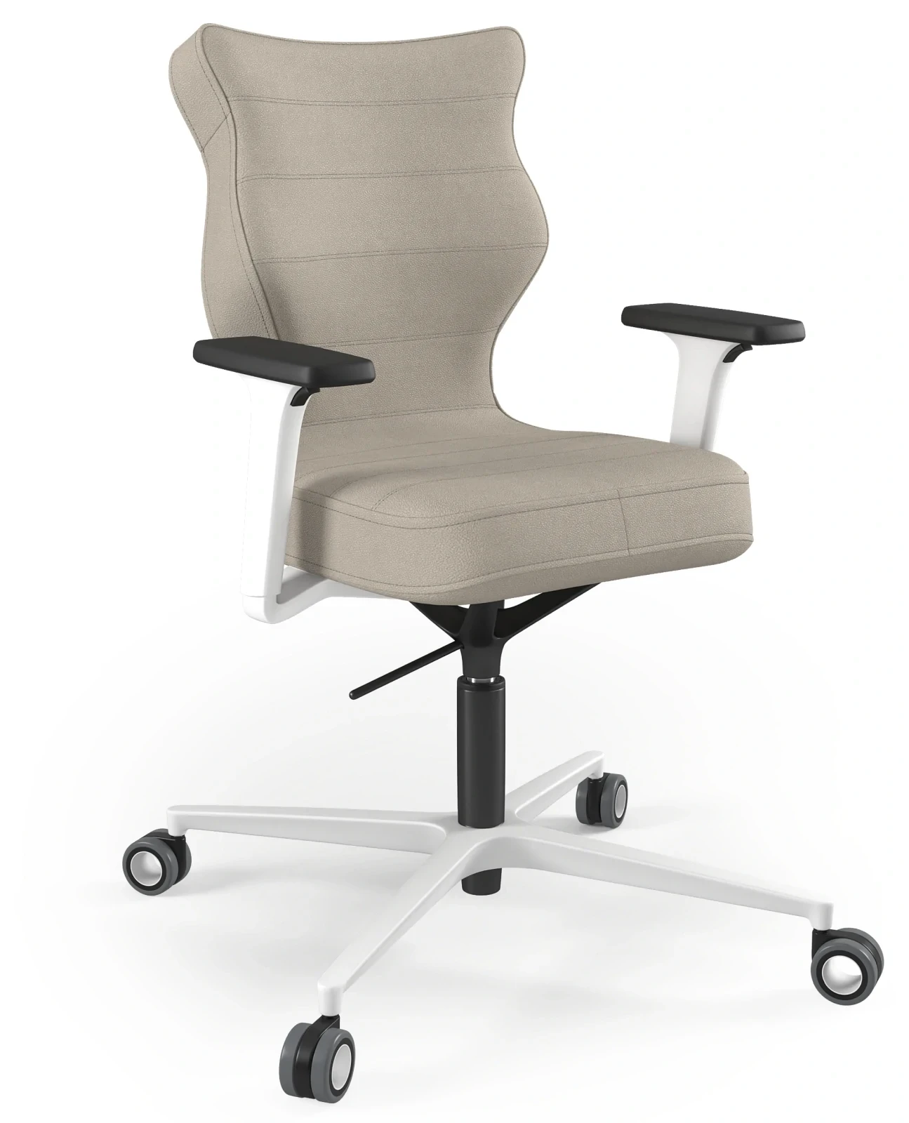 - Regulowana wysokość siedziska - pozwala dopasować krzesło do wzrostu użytkownika oraz wysokości biurka.