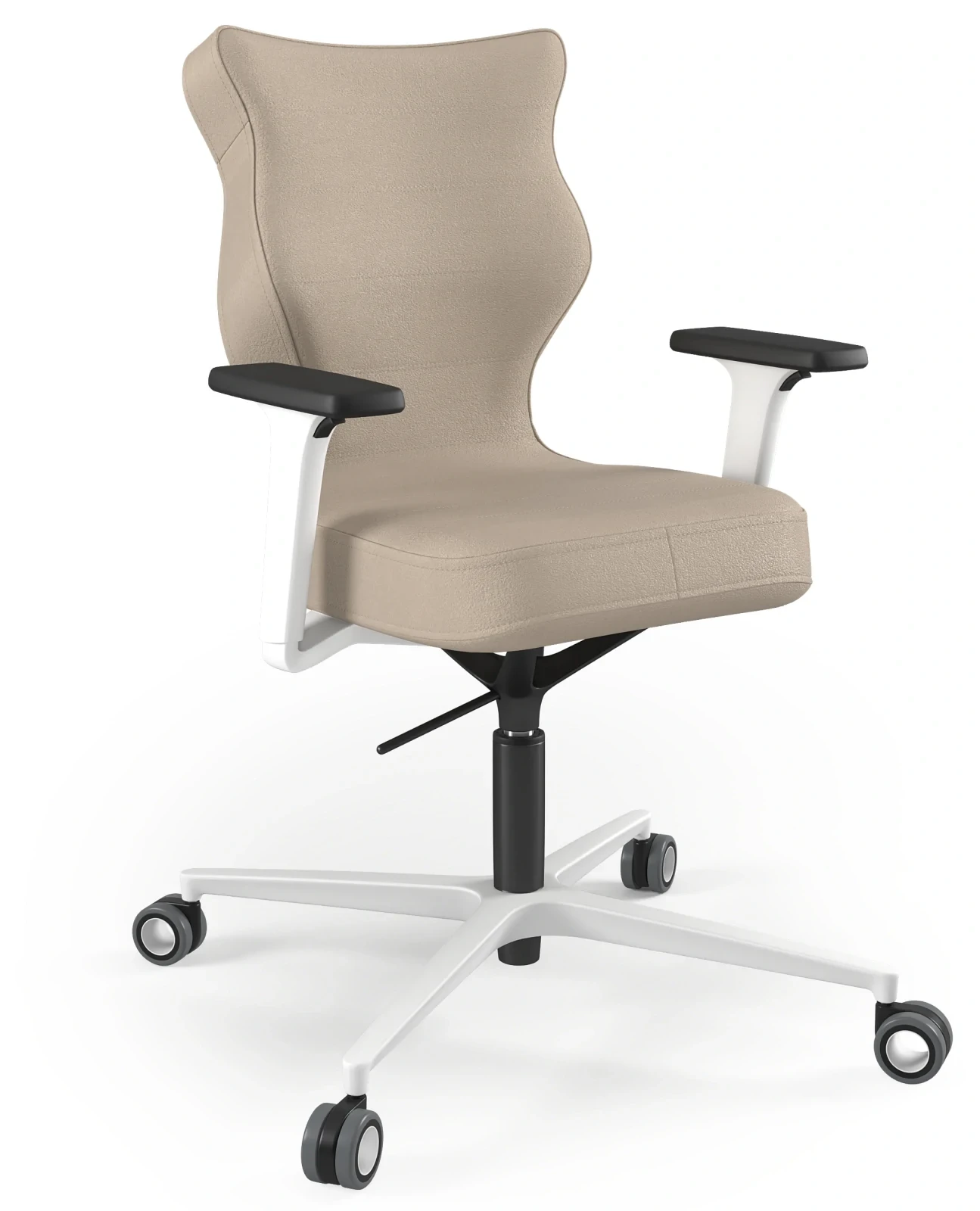 Krzesło obrotowe Zodiac to idealne połączenie ergonomii, elegancji i wysokiej jakości wykonania. Zaprojektowane z myślą o użytkownikach spędzających długie godziny przy biurku, oferuje wygodne, profilowane oparcie, regulowane podłokietniki oraz szeroki zakres regulacji wysokości siedziska. Solidna biała podstawa nadaje meblowi lekkości wizualnej, a jednocześnie zapewnia stabilność i trwałość. Model przeznaczony jest dla osób o wzroście 159–188 cm, doskonale sprawdzając się w biurze lub domowym gabinecie.
