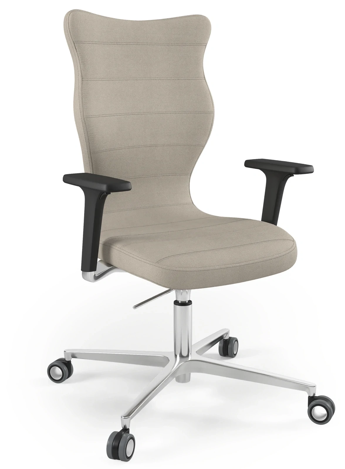 Krzesło obrotowe Zodiac to połączenie ergonomii, elegancji i solidnego wykonania, stworzone z myślą o wysokich osobach potrzebujących maksymalnego komfortu podczas pracy. Wyjątkowo wysokie oparcie i szerokie siedzisko zapewniają idealne podparcie dla kręgosłupa, a regulowane podłokietniki pozwalają na precyzyjne dopasowanie do indywidualnych preferencji. Polerowana aluminiowa podstawa dodaje konstrukcji prestiżu, a jednocześnie gwarantuje stabilność i wytrzymałość. To doskonały wybór do profesjonalnych biur i domowych gabinetów dla osób o wzroście powyżej 188 cm.