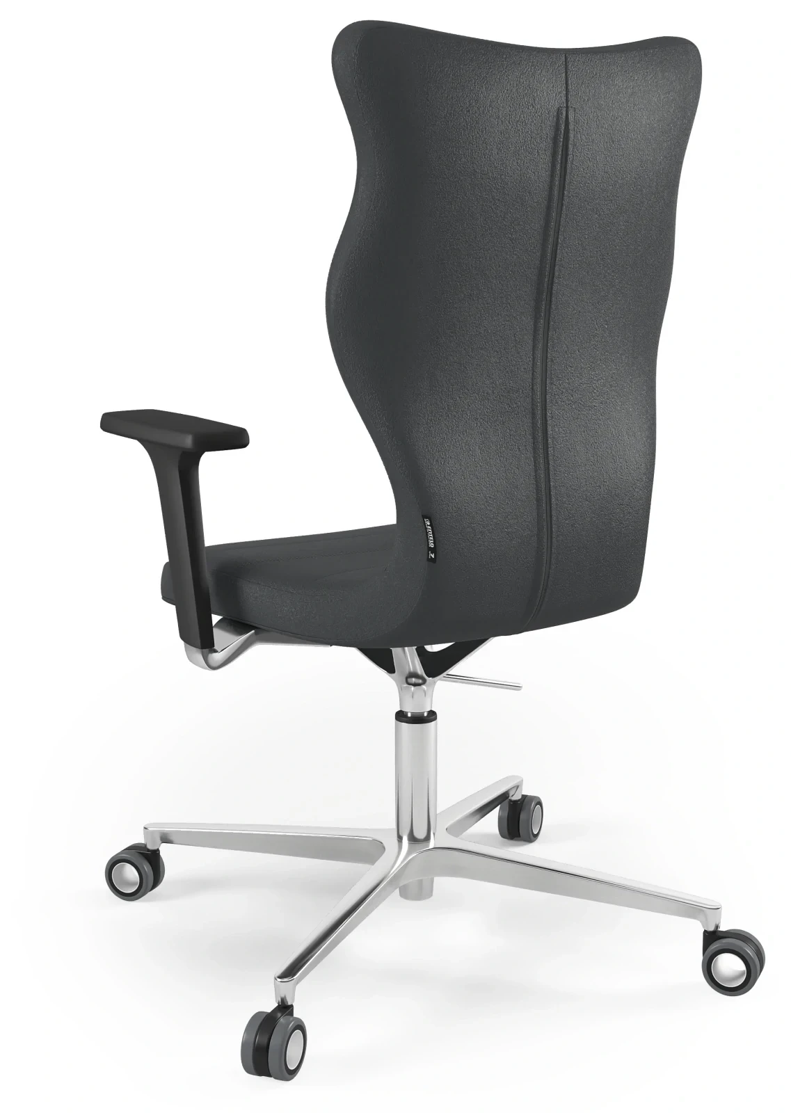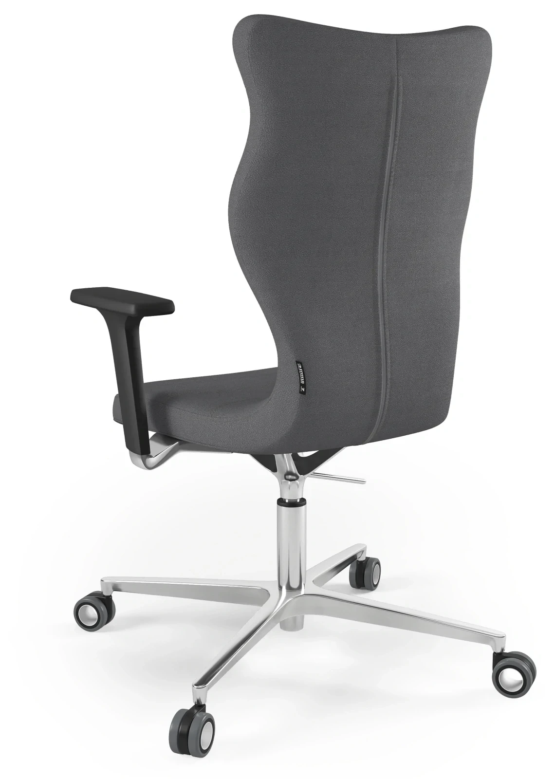 - Ergonomiczne, wysokie oparcie – dopasowane do sylwetki wysokich osób, zapewnia odpowiednie wsparcie pleców i karku.