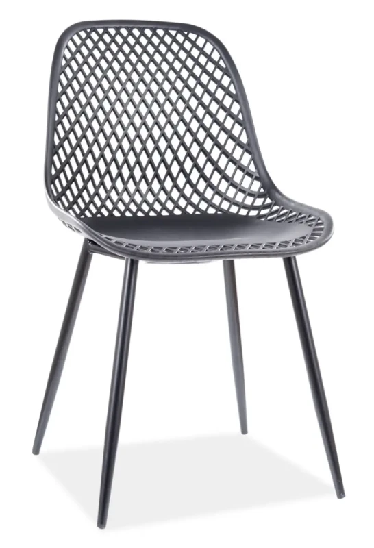 Krzesło Corral A to oryginalna i stylowa propozycja krzesła do jadalni, które zapewni nam wyjątkowy komfort siedzenia. Mebel wykonano wyłącznie z materiałów wysokiej jakości. Siedzisko zostało stworzone z solidnego i odpornego tworzywa PP w klasycznym czarnym kolorze. Krzesło posiada ozdobne oparcie z ażurowym wzorem, które dodaje mu elegancji i stylu. Całość spoczywa na solidnych, metalowych nogach wybarwionych w czarnym matowym kolorze. Krzesło Corral A pięknie ozdobi wnętrze jadalni, czy też kuchni. Jest to niezwykle oryginalny mebel, który z racji swojego klasycznego wyglądu będzie pasować do większości wnętrz. Każdy element krzesła Corral A został doskonale dopracowany.