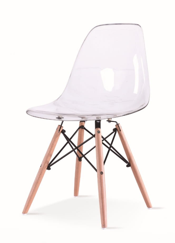 Fotel ICE WOOD to połączenie klasyki z nowoczesnością. Siedzisko mebla w całości zostało wykonane z wysokiej jakości transparentnego poliwęglanu, a nogi z wytrzymałego i stabilnego drewna bukowego. Podstawę umacniają stalowe cięgna w kolorze czarnym, dzięki czemu jest jeszcze sztywniejszy i bardziej solidny. Dzięki swojej konstrukcji i zastosowaniu przezroczystego tworzywa, fotel doskonale sprawdzi się w małych pomieszczeniach, gdzie liczy się każda przestrzeń.
