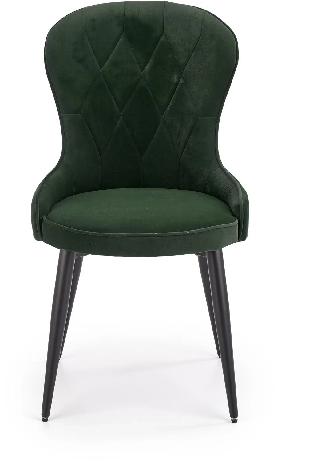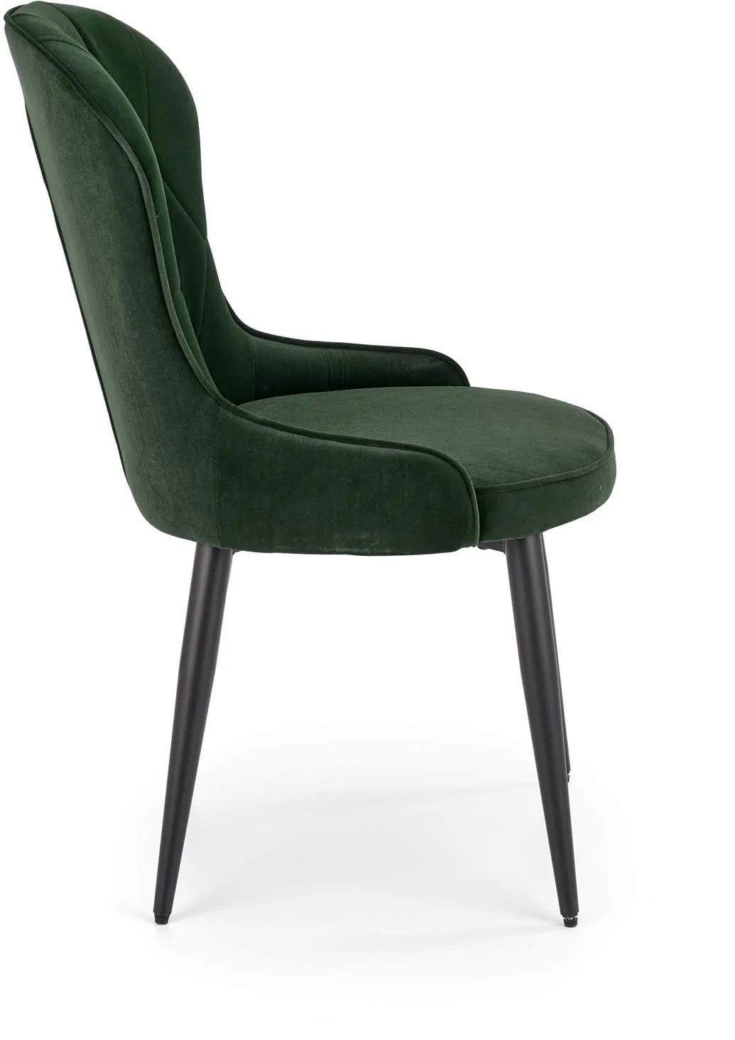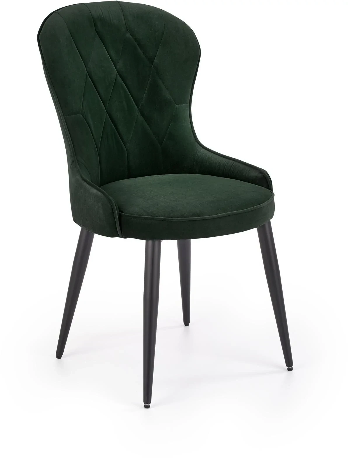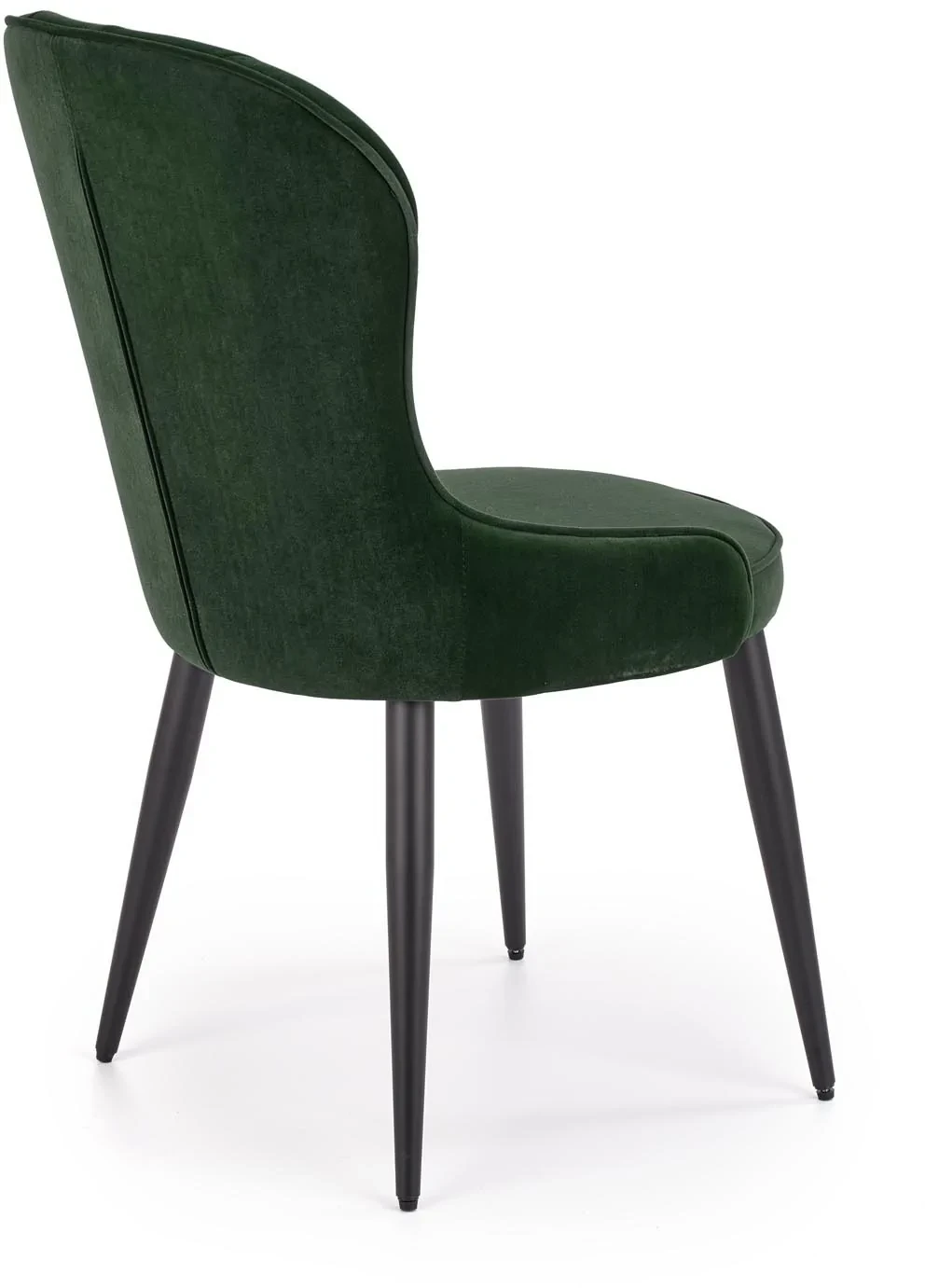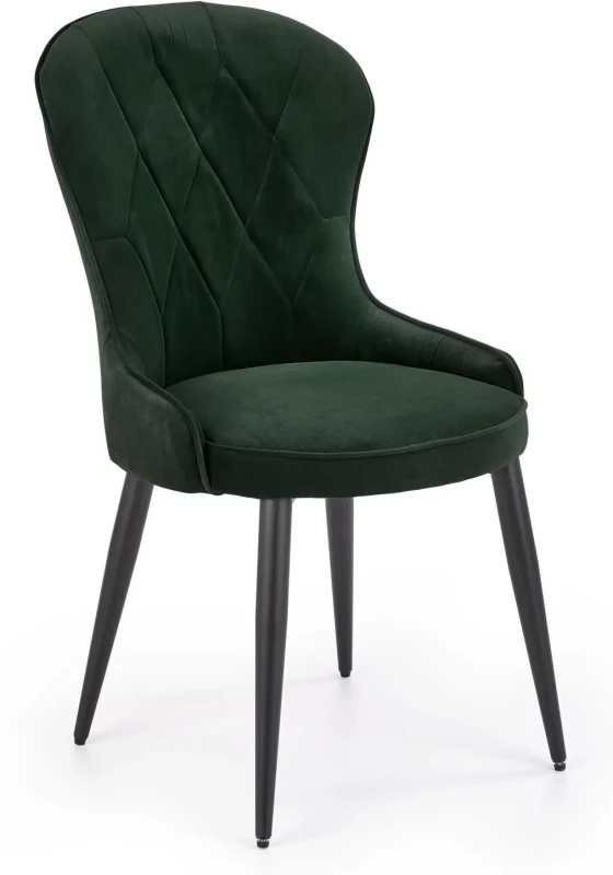 Krzesło K366 to eleganckie połączenie nowoczesnej formy z klasyczną nutą. Tapicerowane tkaniną welurową w odcieniu ciemnej zieleni, wprowadza do wnętrza przytulność i szyk. Delikatny połysk velvetu doskonale komponuje się z czarnym, metalowym stelażem o prostych nogach, tworząc mebel idealny do salonu, jadalni czy restauracji. Krzesło jest nie tylko efektowne, ale i wygodne – dzięki miękkiemu siedzisku oraz odpowiednio wyprofilowanemu oparciu zapewnia komfort nawet przy dłuższym użytkowaniu.