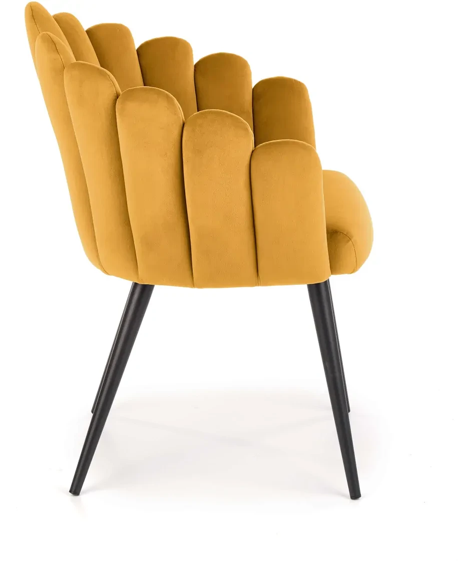Krzesło K410 to wyjątkowy mebel, który idealnie wpisuje się w nowoczesne wnętrza, łącząc w sobie elegancję z funkcjonalnością. Zaprojektowane z myślą o maksymalnym komforcie i estetyce, stanowi doskonały wybór zarówno do salonu, jak i jadalni czy gabinetu. Jego ciepły, musztardowy kolor oraz miękkie linie inspirowane naturą dodają aranżacjom wyrazistego charakteru i przytulności. Wyjątkowy kształt oparcia, przypominający delikatne płatki kwiatu, nie tylko przyciąga wzrok, ale również zapewnia wygodę podczas długiego użytkowania. Dzięki solidnej konstrukcji z malowanej proszkowo stali, krzesło K410 cechuje się wytrzymałością oraz stabilnością, co czyni je idealnym wyborem na lata. To połączenie nowoczesnego designu z wyjątkowym komfortem sprawia, że krzesło staje się nie tylko praktycznym elementem wyposażenia, ale również efektowną dekoracją każdego wnętrza. Doskonale odnajduje się zarówno w przestrzeniach urządzonych w stylu modern, jak i klasycznym. Krzesło K410 to inwestycja w wygodę i styl, która spełni oczekiwania nawet najbardziej wymagających użytkowników.