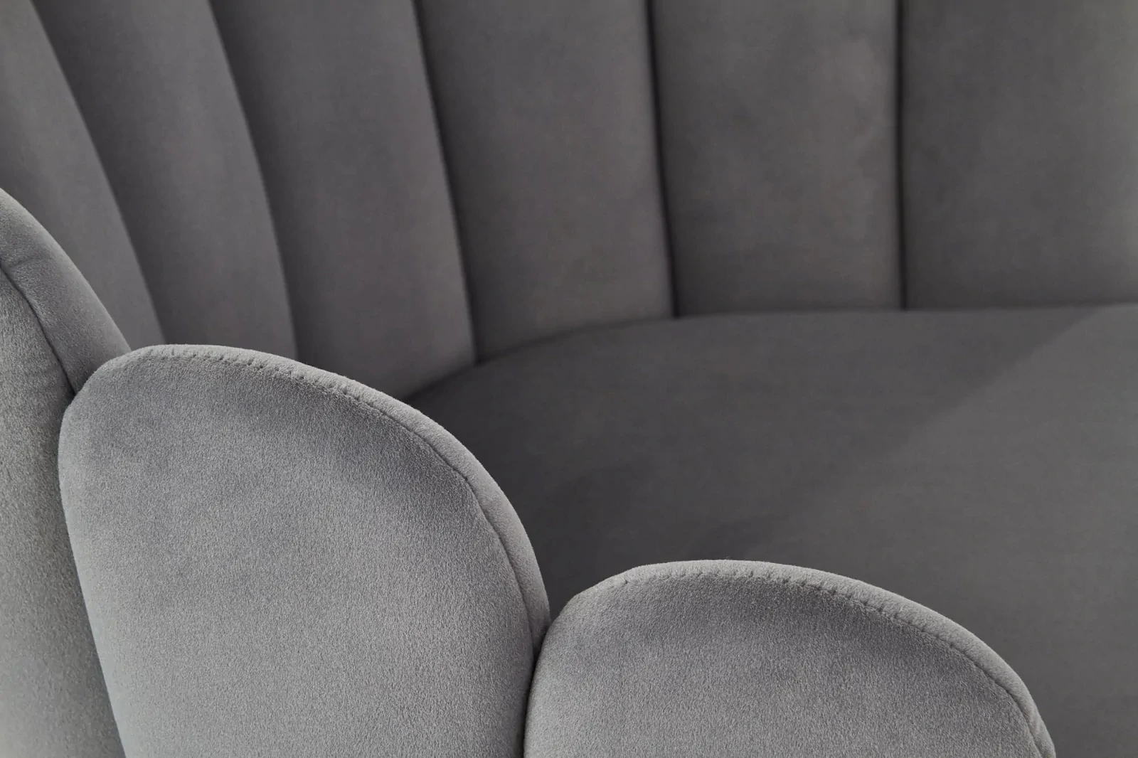 - Oparcie: Miękkie, wyprofilowane oparcie z tkaniny, dopasowujące się do naturalnych krzywizn pleców.