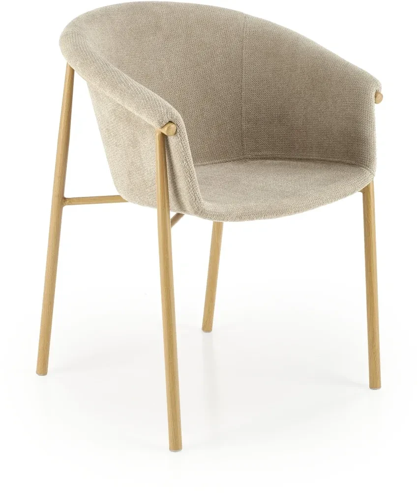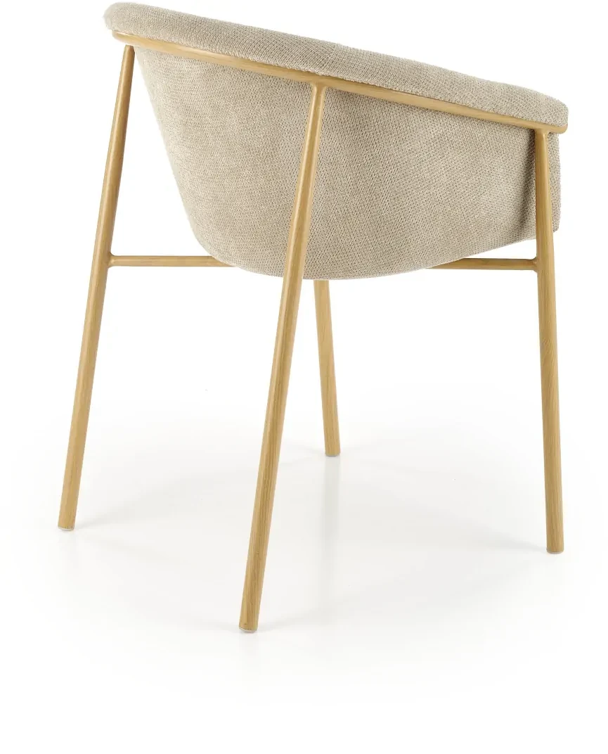 - Nowoczesny design: Połączenie beżowej tkaniny z lekką konstrukcją malowanej stali nadaje krzesłu subtelnej elegancji i uniwersalnego charakteru.