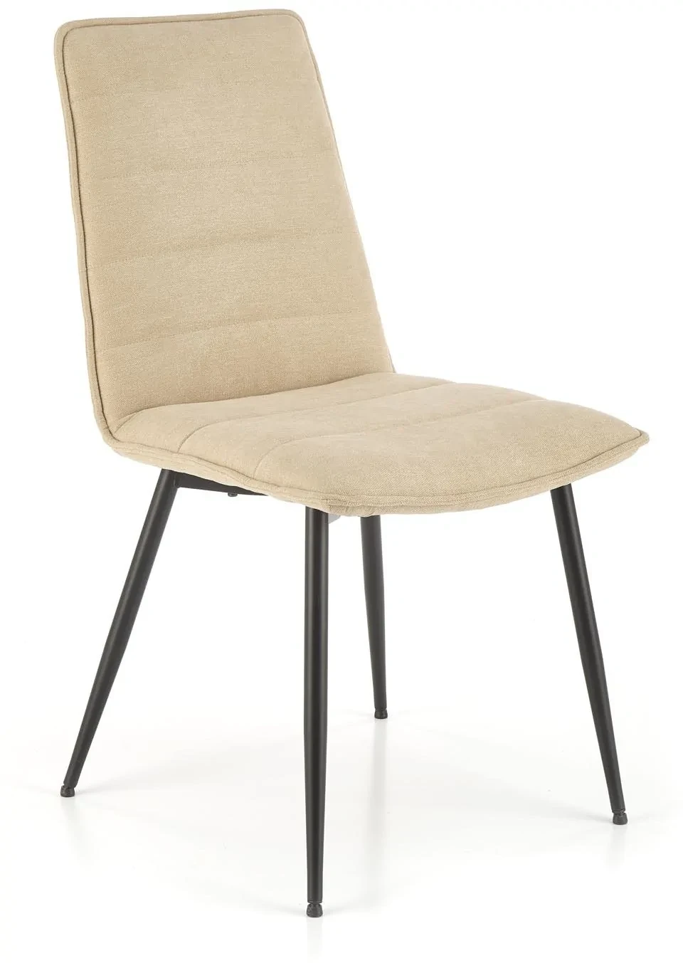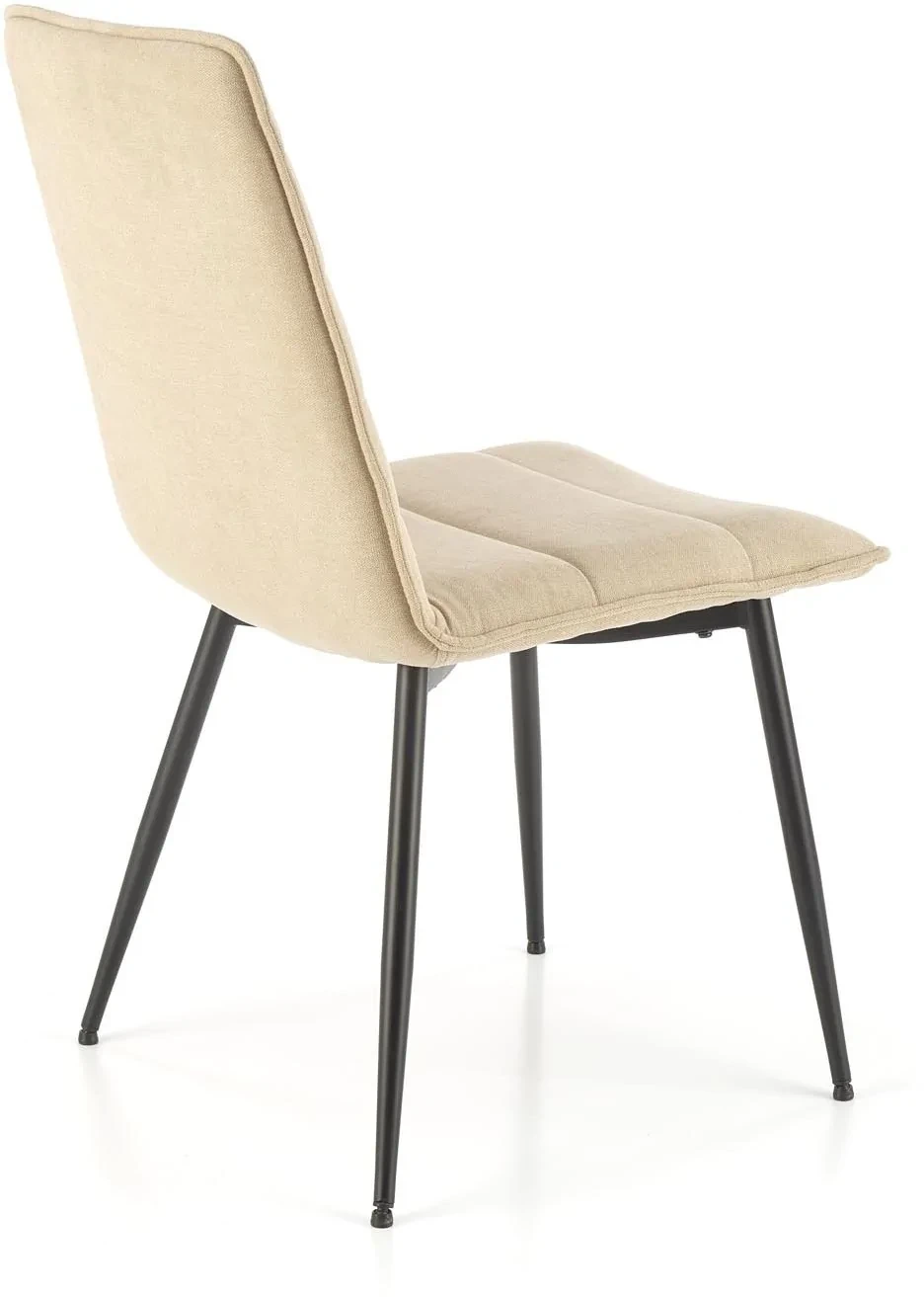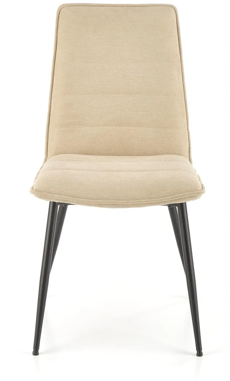Krzesło K493 w kolorze beżowym to elegancka propozycja do nowoczesnych i klasycznych wnętrz. Tapicerowane miękką tkaniną siedzisko w połączeniu z prostym, czarnym stelażem z malowanej proszkowo stali tworzy harmonijne i ponadczasowe połączenie. Krzesło doskonale sprawdzi się zarówno w jadalni, jak i w salonie czy przestrzeni biurowej, wprowadzając do wnętrza przytulny i stylowy charakter.