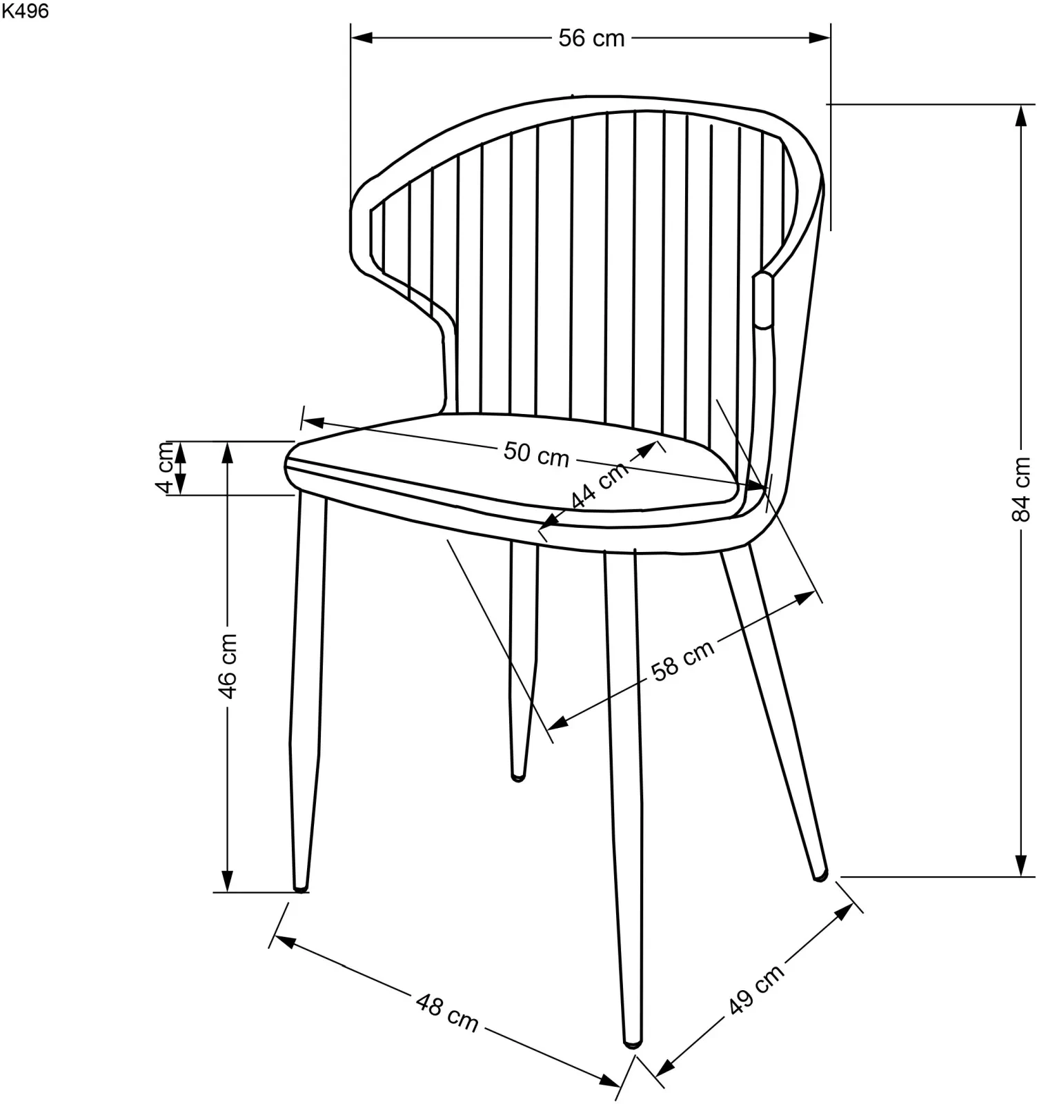 Wymiary krzesła K496: