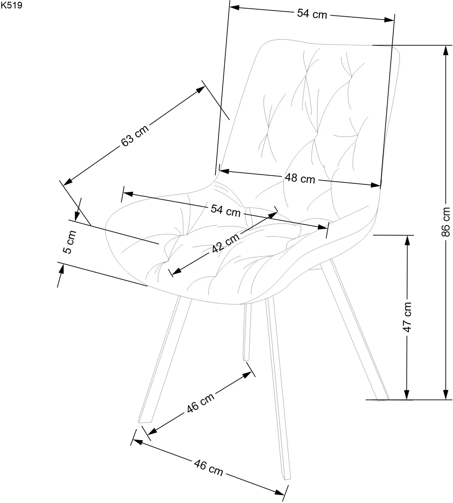 Wymiary krzesła K519: