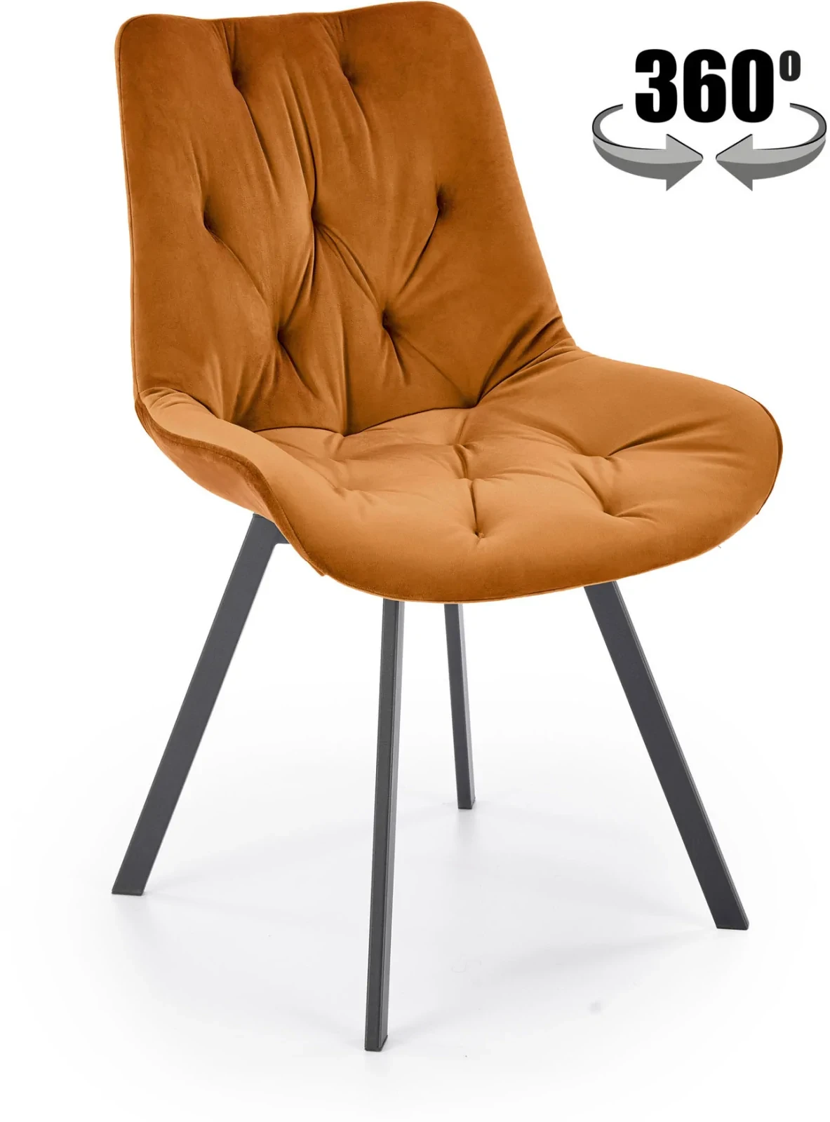 Krzesło K519 to połączenie nowoczesnego stylu z wyjątkową funkcjonalnością. Tapicerowane miękkim welurem w odcieniu cynamonowym, zachwyca elegancją i subtelnym blaskiem tkaniny velvet. Obracane siedzisko o 360° zwiększa komfort użytkowania, czyniąc krzesło idealnym zarówno do jadalni, jak i biura czy salonu. Stabilna, metalowa podstawa w kolorze czarnym nadaje konstrukcji nowoczesnego charakteru oraz gwarantuje trwałość i wytrzymałość.