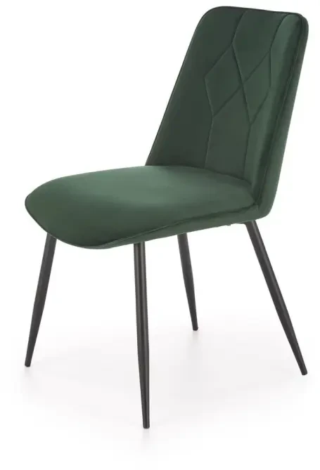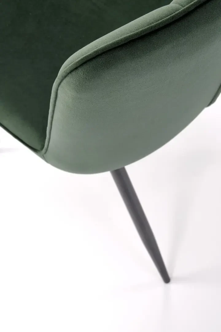 Krzesło K539 to elegancki i wygodny mebel, który doskonale sprawdzi się w jadalni, salonie lub przestrzeni biurowej. Jego nowoczesna forma oraz głęboki, ciemnozielony kolor tapicerki dodają wnętrzu stylu i charakteru. Tapicerka z miękkiej tkaniny velvet w połączeniu z czarnym, metalowym stelażem tworzy efektowny kontrast, podkreślający współczesny design krzesła. Model ten łączy w sobie estetykę z funkcjonalnością – zapewnia komfort siedzenia, a jednocześnie jest stabilny i solidny.