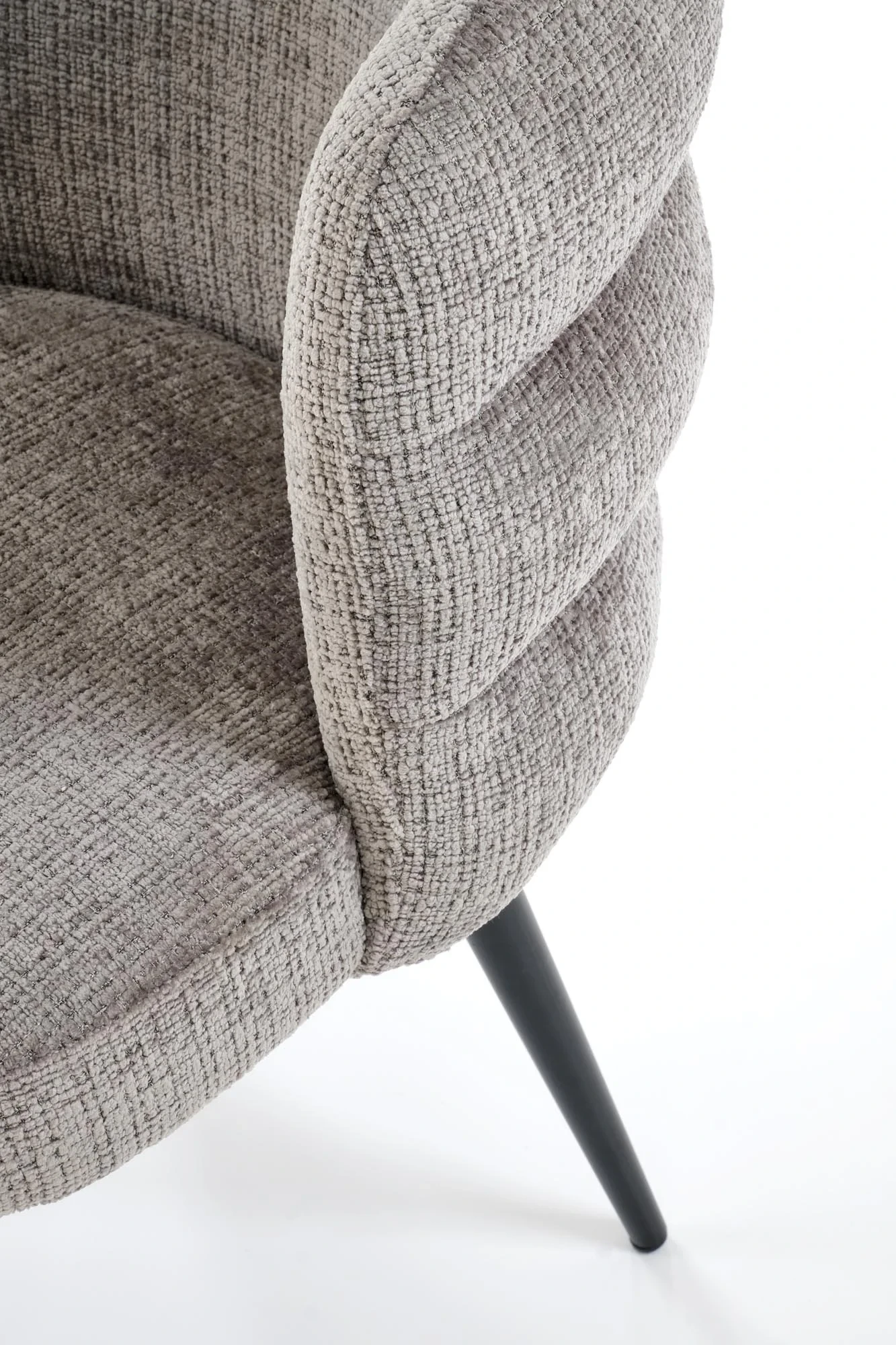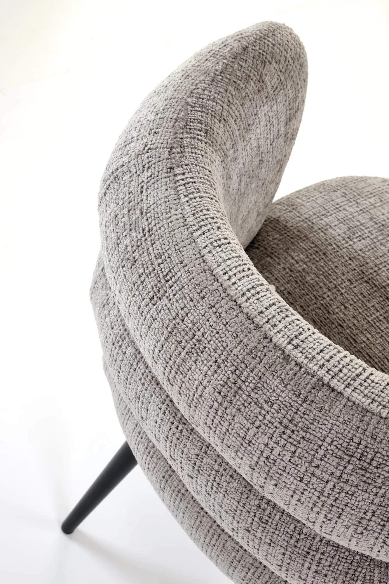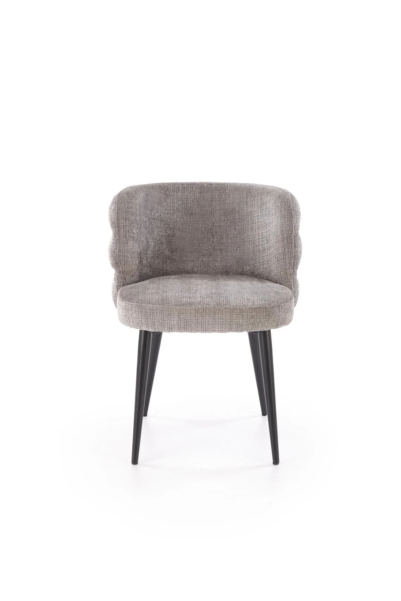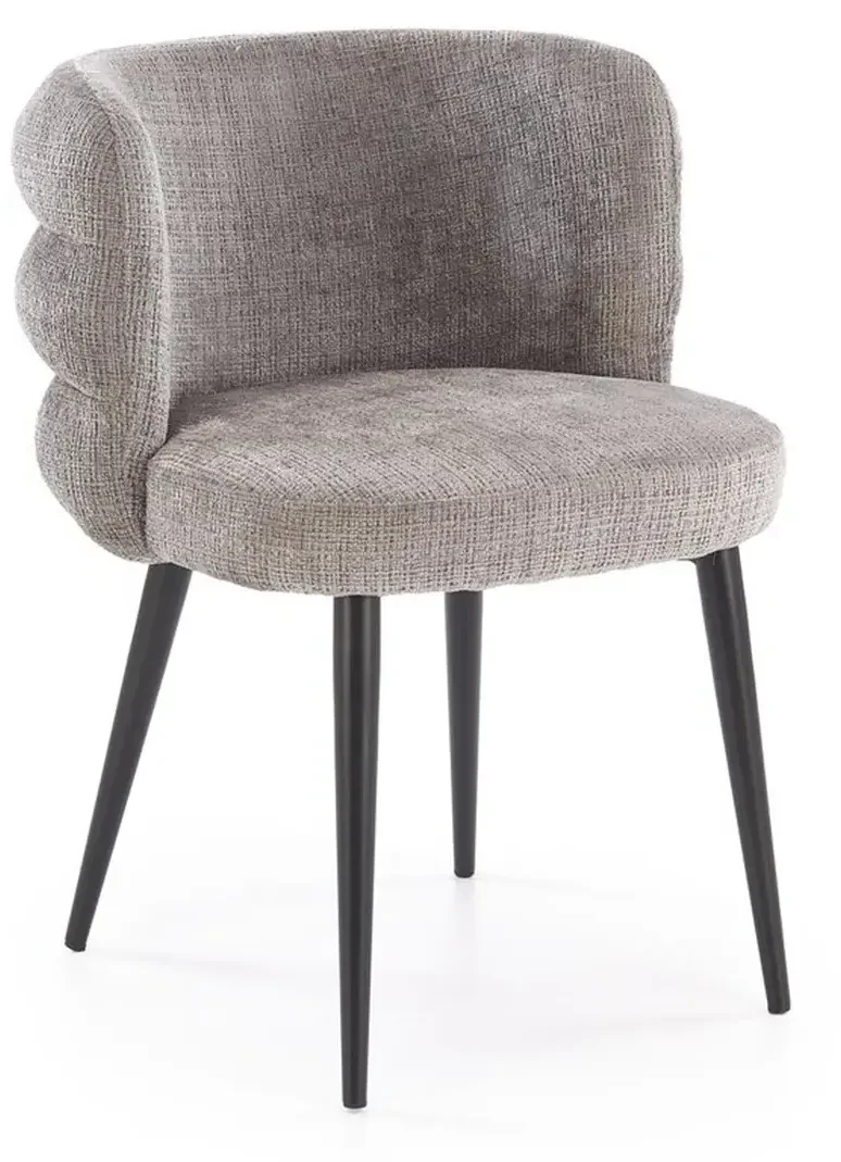 Model doskonale sprawdzi się w jadalni, salonie lub przestrzeni biurowej, wprowadzając do wnętrza subtelną, stonowaną estetykę. Popielata tapicerka w zestawieniu z czarnym stelażem tworzy uniwersalne i ponadczasowe połączenie kolorystyczne.