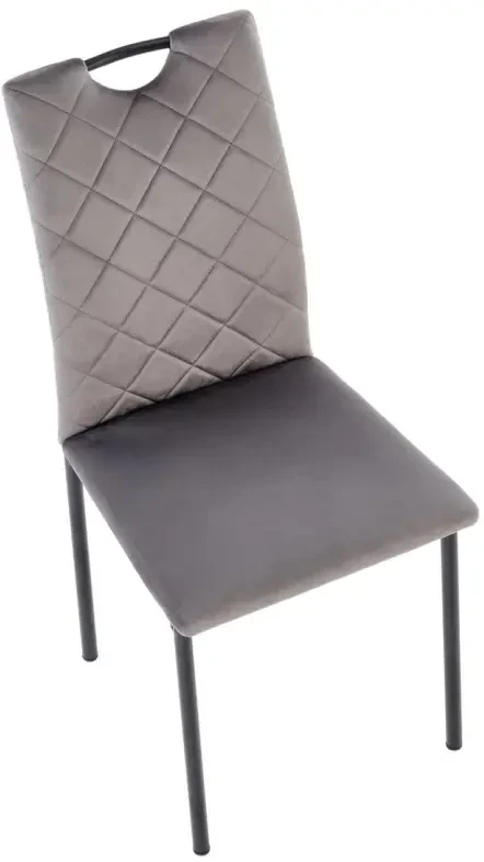 Krzesło K577 to elegancki i funkcjonalny model stworzony z myślą o nowoczesnych wnętrzach. Tapicerowane miękką tkaniną velvet w odcieniu popielatym i oparte na stabilnym, czarnym metalowym stelażu, doskonale łączy komfort z minimalistycznym designem.