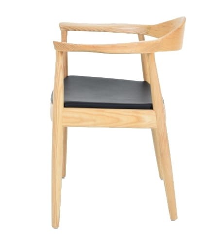 Modernistyczne krzesło Konnedy zostało wykonane z najwyższej jakości materiałów. Siedzisko z czarnej eko-skóry zostało połączone z pięknie formowanym drewnem jesionowym. Szerokie podłokietniki i kształt oparcia powodują, że krzesło jest niezwykle komfortowe w użytkowaniu. Krzesło jest inspirowane projektem duńskiego projektanta Hansa J. Wegnera. Idealnie sprawdzi się w biurach czy gabinetach, ale znajdzie również swoje zastosowanie w przypadku takich miejsc jak stylowe restauracje i kawiarnie.