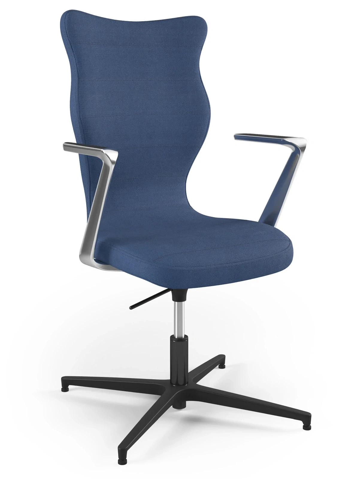 Krzesło konferencyjne Kylie Plus to elegancki i wygodny model stworzony z myślą o osobach wysokich, które oczekują maksymalnego komfortu i wysokiej jakości wykonania. Wyposażone w podnośnik gazowy oraz mechanizm z dźwignią prostą, pozwala na płynną regulację wysokości oraz swobodny obrót siedziska. Czteroramienna metalowa podstawa w kolorze czarnym zapewnia stabilność i trwałość, a podłokietniki gwarantują dodatkowe wsparcie dla ramion. Profilowane, wysokie oparcie i staranne przeszycia w kolorze tkaniny czynią ten model idealnym wyborem do biur, gabinetów i sal konferencyjnych.