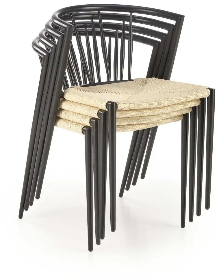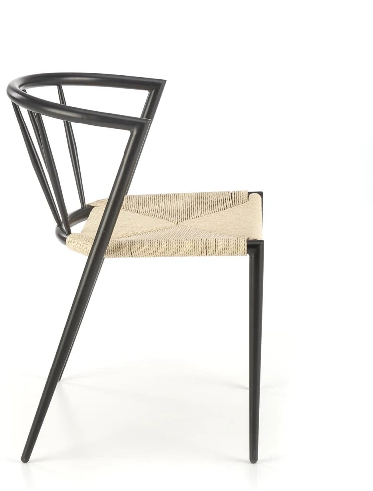 Krzesło K515 to propozycja dla osób, które cenią nowoczesny design, ale nie chcą rezygnować z naturalnych akcentów. Łączy w sobie surowość metalowej konstrukcji z ciepłem siedziska wykonanego z plecionego sznurka w naturalnym kolorze. Jego geometryczna, otwarta forma przyciąga wzrok i doskonale wpisuje się w modne aranżacje inspirowane stylem japandi, loftowym czy skandynawskim. Ergonomicznie wyprofilowane oparcie i lekko odchylone nogi zapewniają wygodę podczas siedzenia i stabilność użytkowania, a także podkreślają nowoczesny charakter mebla. K515 doskonale sprawdzi się zarówno w jadalni, jak i w przestrzeniach komercyjnych – restauracjach, kawiarniach czy biurach, gdzie liczy się styl i funkcjonalność. To doskonały wybór dla tych, którzy poszukują lekkiego wizualnie, ale solidnego krzesła z duszą.