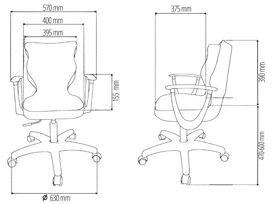 - Rozmiar 5 - dostosowany do wzrostu użytkownika 146-176,5 cm oraz wysokości biurka około 70-82 cm