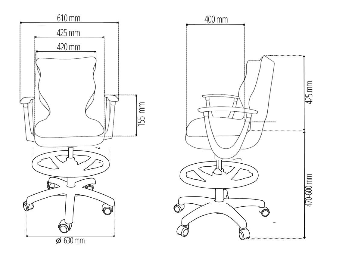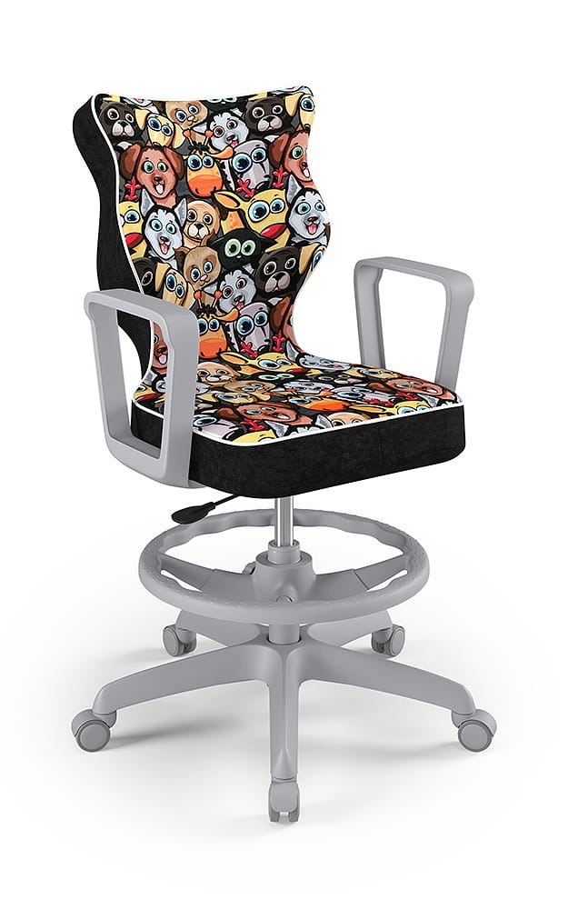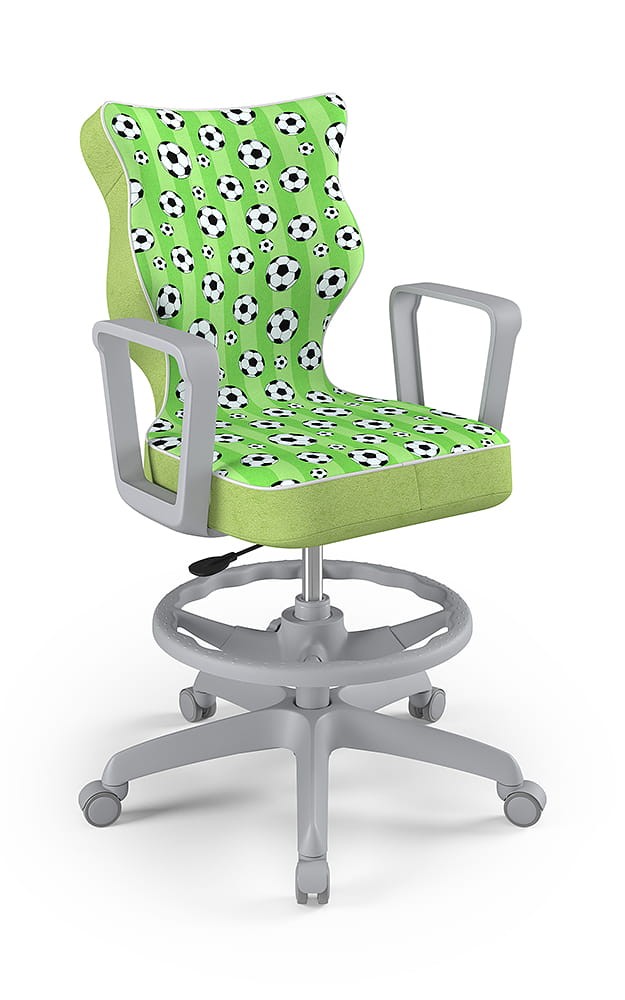 Krzesło Norm z podnóżkiem to młodzieżowa propozycja krzesła tak do pokoju młodszych i starszych dzieci jak i pracowni szkolnych, wyposażona w tapicerkę w popularnych kolorach odpowiednią dla dzieci i młodzieży oraz obrotową podstawę i stabilne podłokietniki. Komfortowe i ergonomiczne siedzisko tapicerowane jest wytrzymałą tkaniną i dzięki gazowemu podnośnikowi pozwala płynnie ustawić odpowiednią dla dziecka pozycję przed biurkiem. Profilowane oparcie jest miękkie, ale jednocześnie wymusza odpowiednią pozycję pleców, dzięki czemu pozwala zmniejszyć ryzyko powstawania wad postawy. Podstawa jezdna wykonana z wzmocnionego włóknem szklanym tworzywa posiada miękkie kółka pozwalające użytkować krzesło tak na miękkich dywanach, jak twardych parkietach.