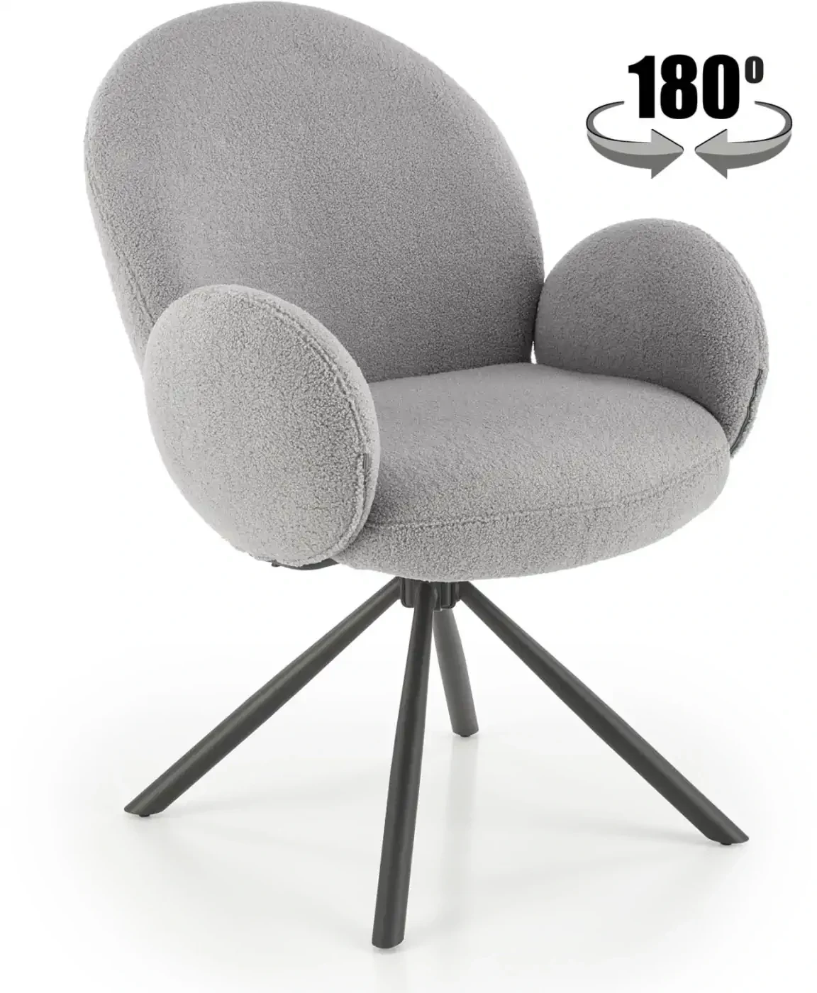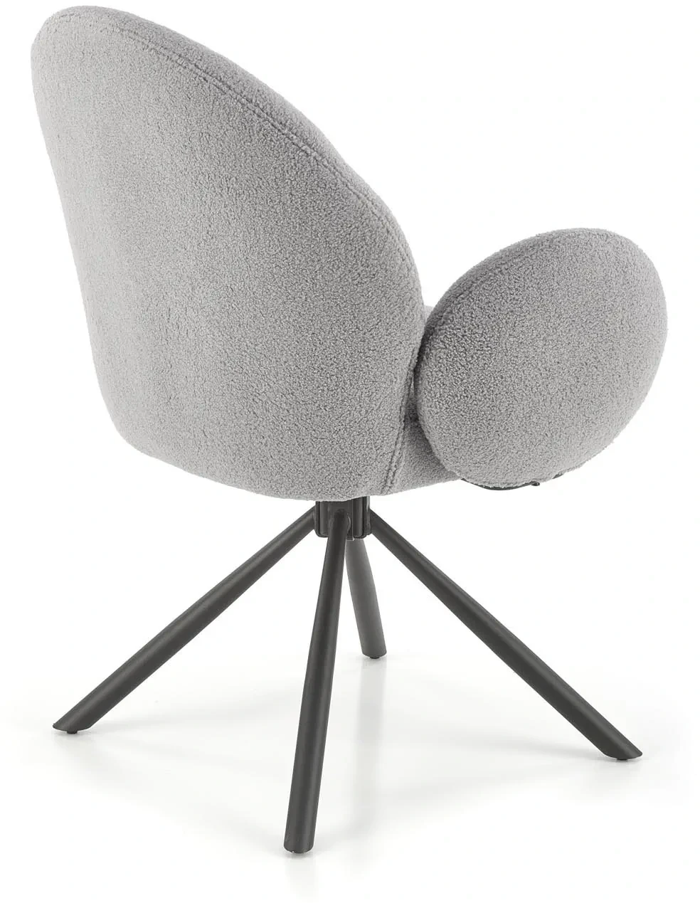 Krzesło K498 to połączenie nowoczesnego designu i wyjątkowego komfortu. Tapicerowane miękką, przyjemną w dotyku tkaniną bouclé w modnym popielatym odcieniu, doskonale wpisze się w aranżacje w stylu modern, loft czy skandynawskim. Obracane siedzisko oraz stabilna, czarna podstawa ze stali malowanej proszkowo gwarantują wygodę użytkowania i trwałość na lata. Krzesło idealnie sprawdzi się zarówno przy stole w jadalni, jak i w eleganckim gabinecie lub salonie.