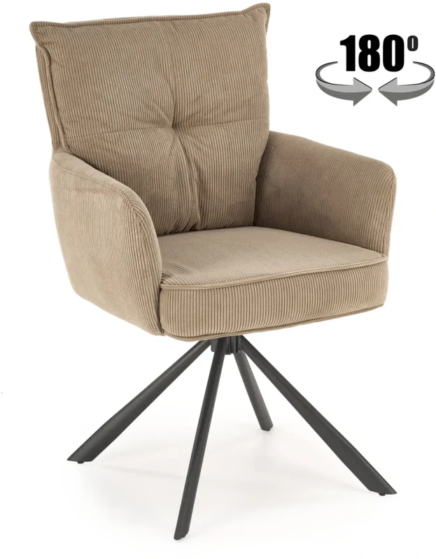 Krzesło obrotowe K528 sztruksowe z podłokietnikami wygodne do jadalni cappuccino