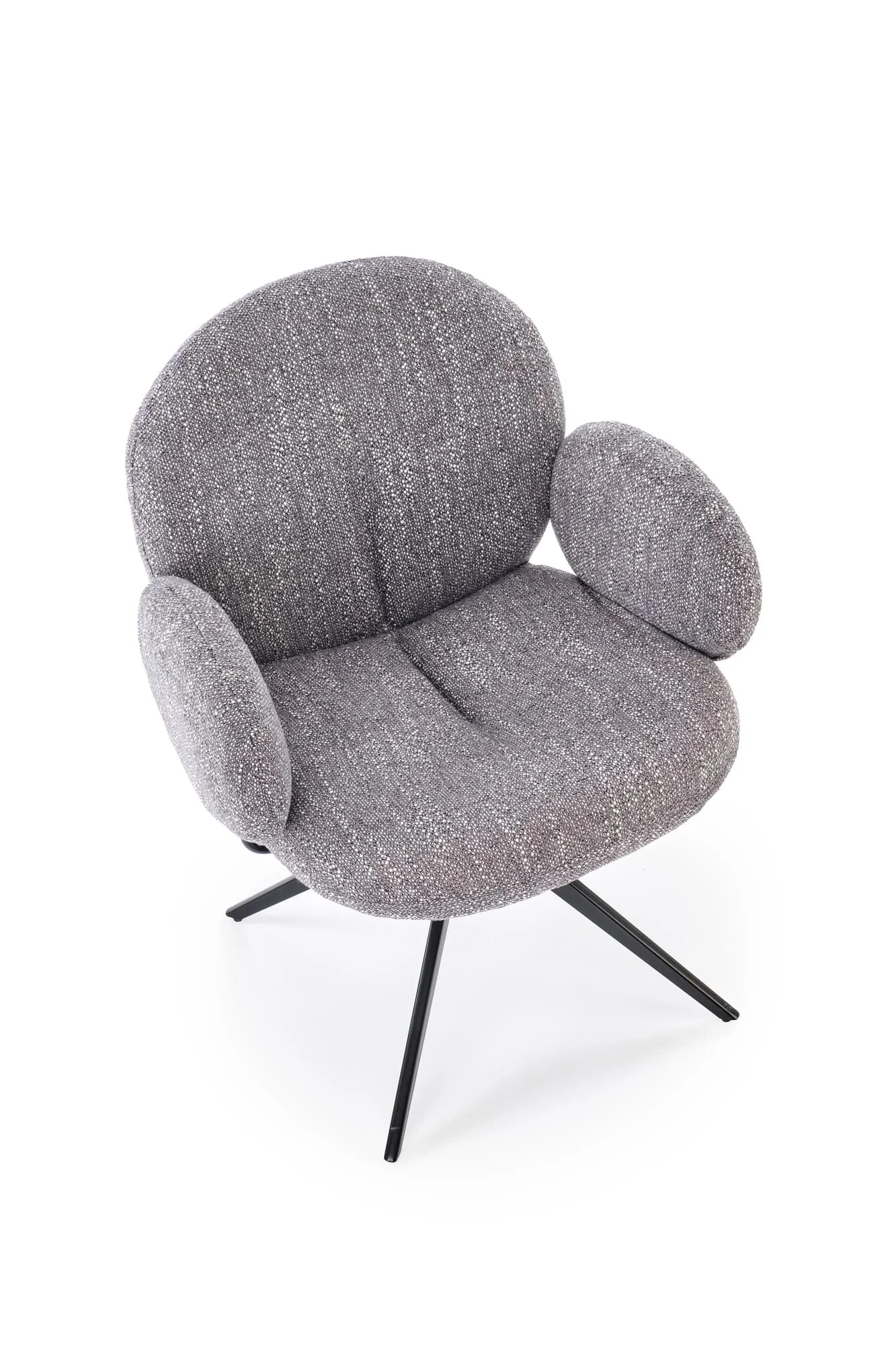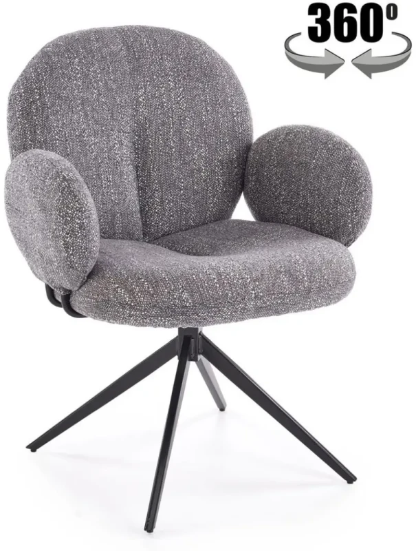Model wyposażony jest w funkcję obracania 360°, co zwiększa komfort codziennego użytkowania i swobodę ruchu. Miękka forma oraz dopracowane detale sprawiają, że krzesło wprowadza do wnętrza nowoczesny charakter i przytulną atmosferę.