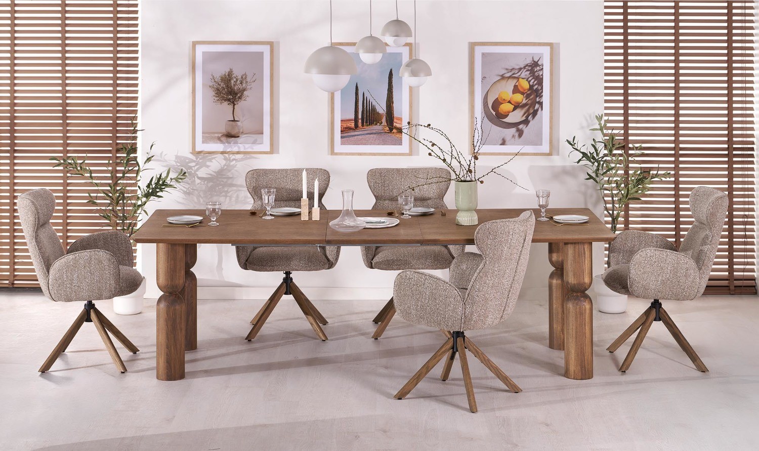 Krzesło K585 to doskonały wybór dla osób, które szukają mebla łączącego funkcjonalność z wysmakowaną estetyką. Model ten wyróżnia się wysokim komfortem użytkowania, dzięki ergonomicznemu oparciu z zagłówkiem, miękkiej tapicerce z tkaniny o wyraźnej strukturze oraz praktycznym mechanizmie obrotowym, który zwiększa swobodę ruchu. To idealne rozwiązanie do nowoczesnej jadalni, stylowego biura lub domowego gabinetu, gdzie liczy się zarówno wygoda, jak i styl. Podstawa z litego drewna dębowego w naturalnym wybarwieniu nadaje krzesłu ciepły, ponadczasowy charakter i doskonale komponuje się z modnym, ciemnobeżowym odcieniem tapicerki. Solidna konstrukcja i staranność wykonania sprawiają, że K585 będzie nie tylko efektownym elementem aranżacji, ale też trwałym i praktycznym meblem na lata.