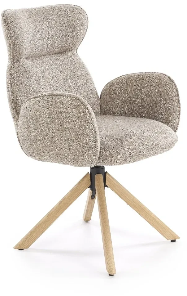 Krzesło obrotowe K585 tapicerowane do jadalni ciemny beżowy/dąb naturalny