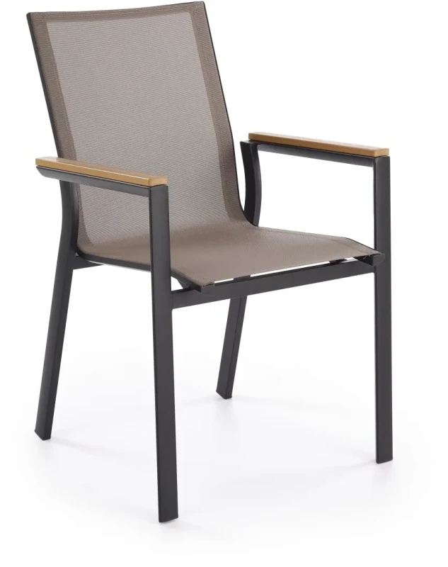 Krzesło ogrodowe Fierro aluminiowe z siatką i podłokietnikami nowoczesne czarny/popielaty/brązowy
