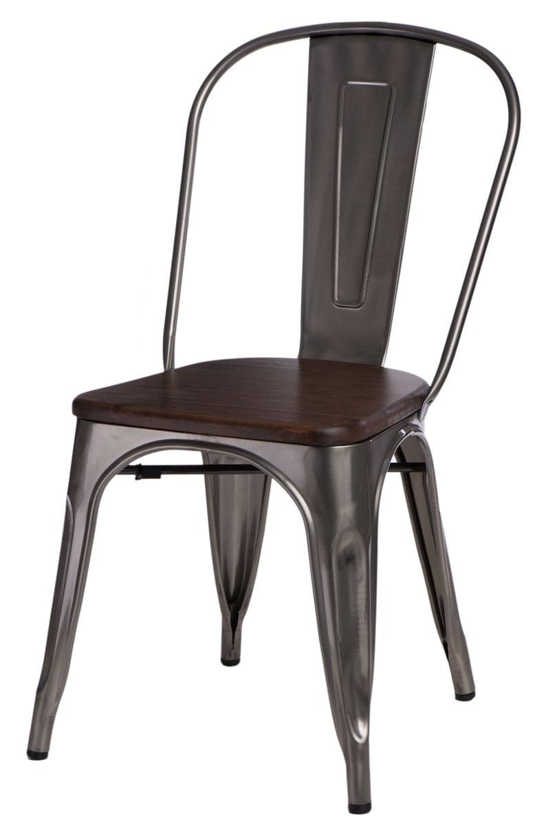 Krzesło Paris Wood to designerskie połączenie surowego drewna i lakierowanego metalu. Dopełnieniem całości będzie blat wykonany z sosnowego drewna w wybarwieniu orzechowym. Lakierowana powierzchnia drewnianego siedziska jest gładka i łatwa do utrzymania w czystości. Lakier wnikając w strukturę orzechowego blatu, uwypukla walory drewna. To połączenie dodaje smaku całości kompozycji i sprawia, że mebel zyskuje niepowtarzalny wygląd. Całość projektu to wyjątkowa forma użytkowa.