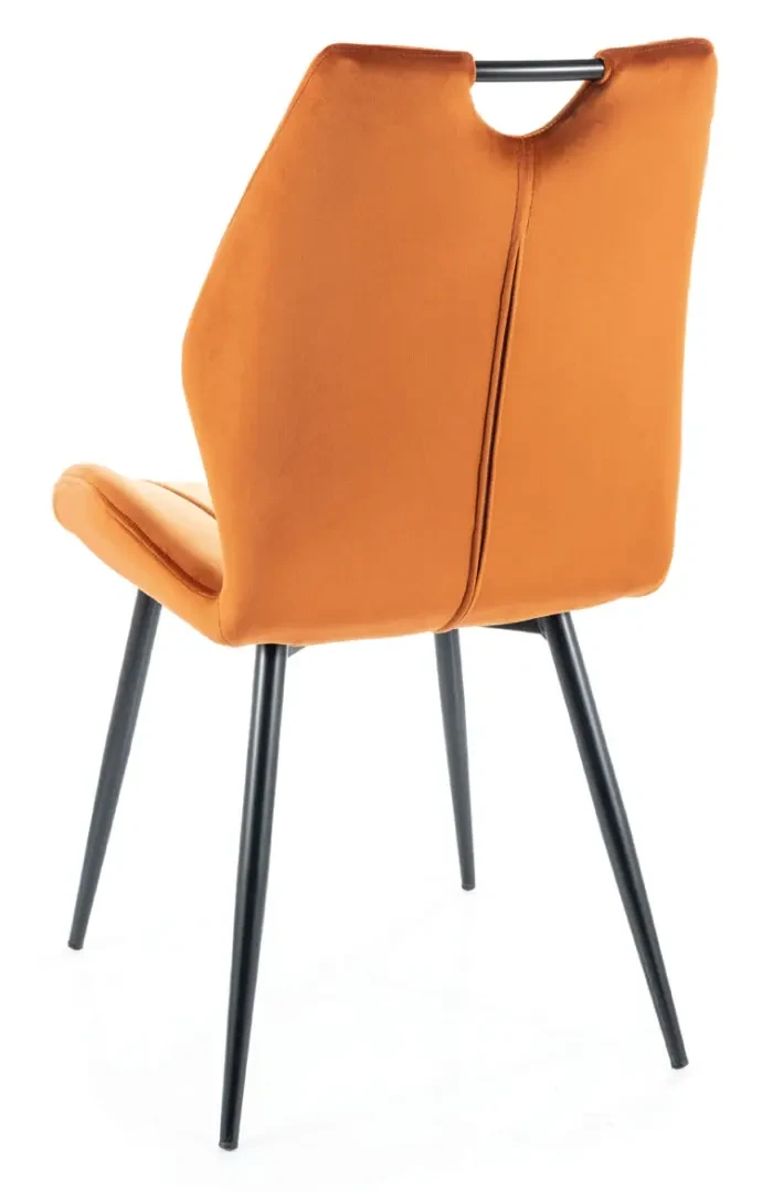 Krzesło Arco Velvet to oryginalna i stylowa propozycja tapicerowanego krzesła, które zapewni nam wyjątkowy komfort siedzenia. Mebel wykonany został wyłącznie z materiałów wysokiej jakości. Siedzisko tapicerowane jest wytrzymałą i niezwykle miękką w dotyku tkaniną aksamitną Bluvel 4215 w pięknym cynamonowym kolorze. Całość spoczywa na solidnych, metalowych nogach wybarwionych w czarnym, matowym kolorze. Krzesło Arco Velvet pięknie ozdobi wnętrze jadalni, czy też restauracji. Jego wyszukana forma zachwyci nawet najbardziej wymagających. Jest to niezwykle oryginalny mebel, który z racji swojego klasycznego wyglądu będzie pasować do większości wnętrz. Każdy element krzesła Arco Velvet został doskonale dopracowany.
