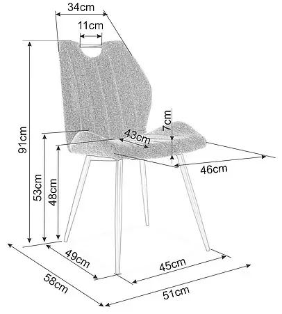 - Czarne, matowe nóżki - dodają krzesłu niezwykłej gracji i eleganckiego designu
