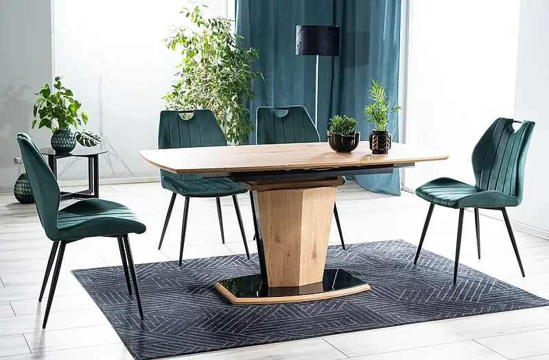 Krzesło Arco Velvet to oryginalna i stylowa propozycja tapicerowanego krzesła, które zapewni nam wyjątkowy komfort siedzenia. Mebel wykonany został wyłącznie z materiałów wysokiej jakości. Siedzisko tapicerowane jest wytrzymałą i niezwykle miękką w dotyku tkaniną aksamitną Bluvel 78 w klasycznym zielonym kolorze. Całość spoczywa na solidnych, metalowych nogach wybarwionych w czarnym, matowym kolorze. Krzesło Arco Velvet pięknie ozdobi wnętrze jadalni, czy też restauracji. Jego wyszukana forma zachwyci nawet najbardziej wymagających. Jest to niezwykle oryginalny mebel, który z racji swojego klasycznego wyglądu będzie pasować do większości wnętrz. Każdy element krzesła Arco Velvet został doskonale dopracowany.