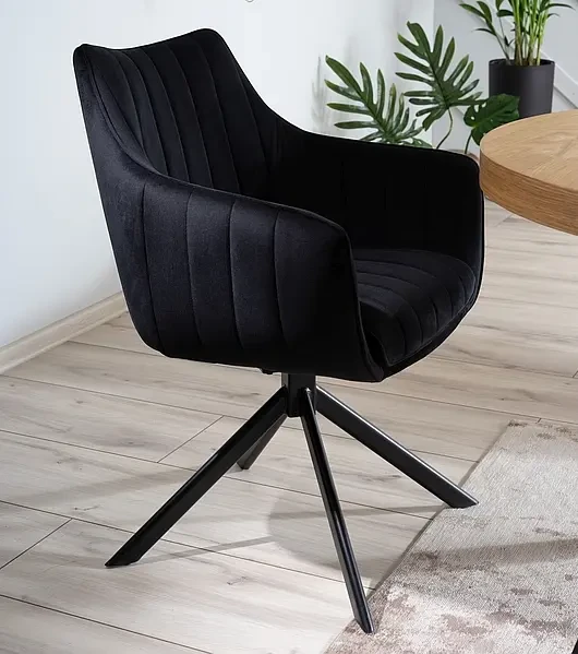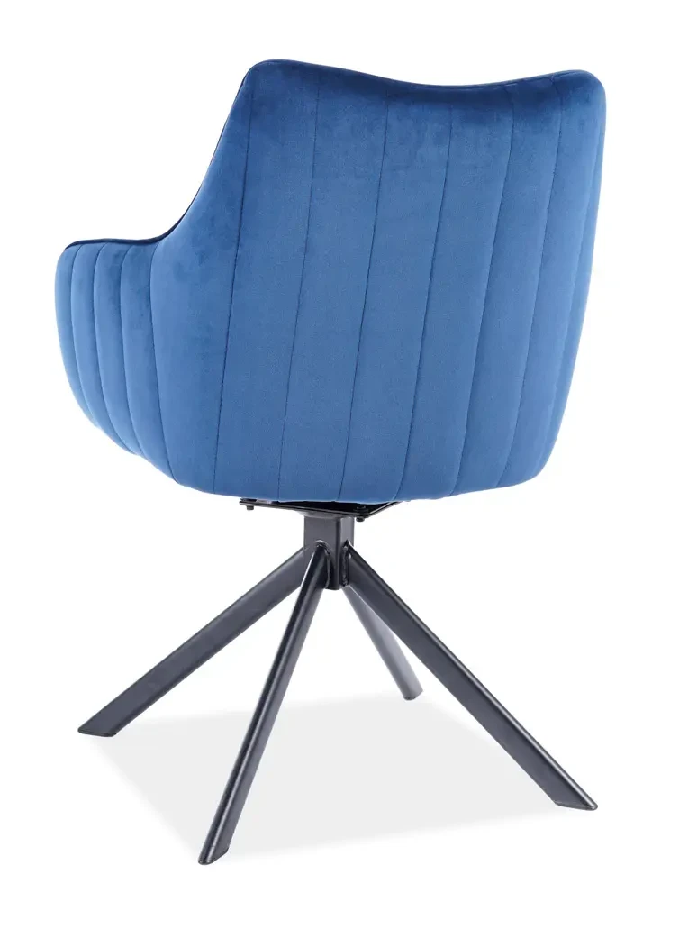Krzesło Azalia Velvet to oryginalna i stylowa propozycja tapicerowanego krzesła, które zapewni nam wyjątkowy komfort siedzenia. Mebel wykonany został wyłącznie z materiałów wysokiej jakości. Siedzisko tapicerowane jest wytrzymałą i niezwykle miękką w dotyku tkaniną aksamitną Bluvel 86 w klasycznym granatowym kolorze. Dodatkowym atutem krzesła jest wyjątkowe siedzisko obracane w zakresie 180 stopni. Całość spoczywa na solidnych, metalowych nogach wybarwionych w czarnym, matowym kolorze. Krzesło Azalia Velvet pięknie ozdobi wnętrze jadalni, czy też restauracji. Jest to niezwykle oryginalny mebel, który z racji swojego klasycznego wyglądu będzie pasować do większości wnętrz. Każdy element krzesła Azalia Velvet został doskonale dopracowany.