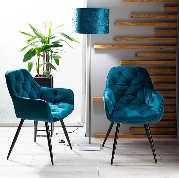 - Metalowe, czarne, matowe nóżki - dodają krzesłu niezwykłej gracji i eleganckiego designu